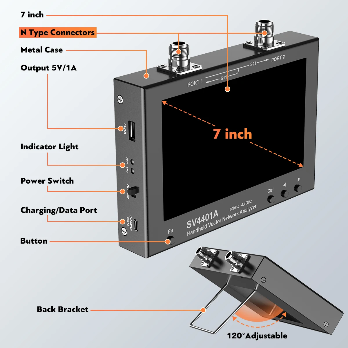 7inch 50KHz-4.4GHz SV4401A Touch LCD NanoVNA VNA Vector Network Antenna Analyzer UHF HF VHF SWR 100db Dynamic Upgrade Version