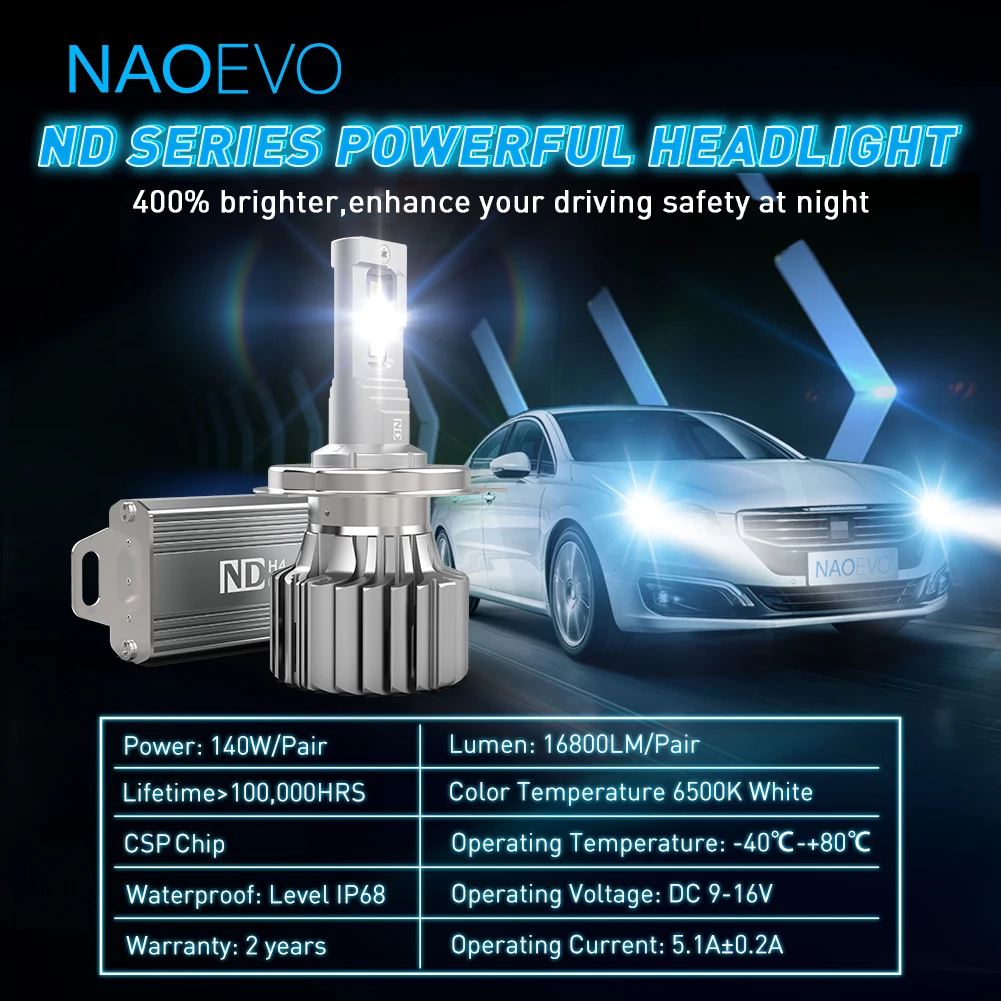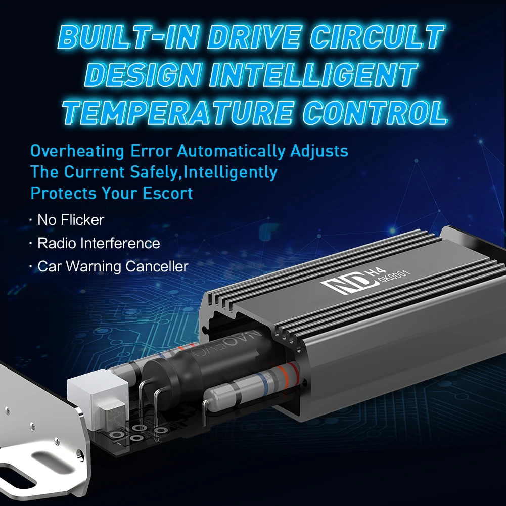 - The intelligent temperature control driver inside the bulb keeps ND headlight bulb working under a normal temperature.
