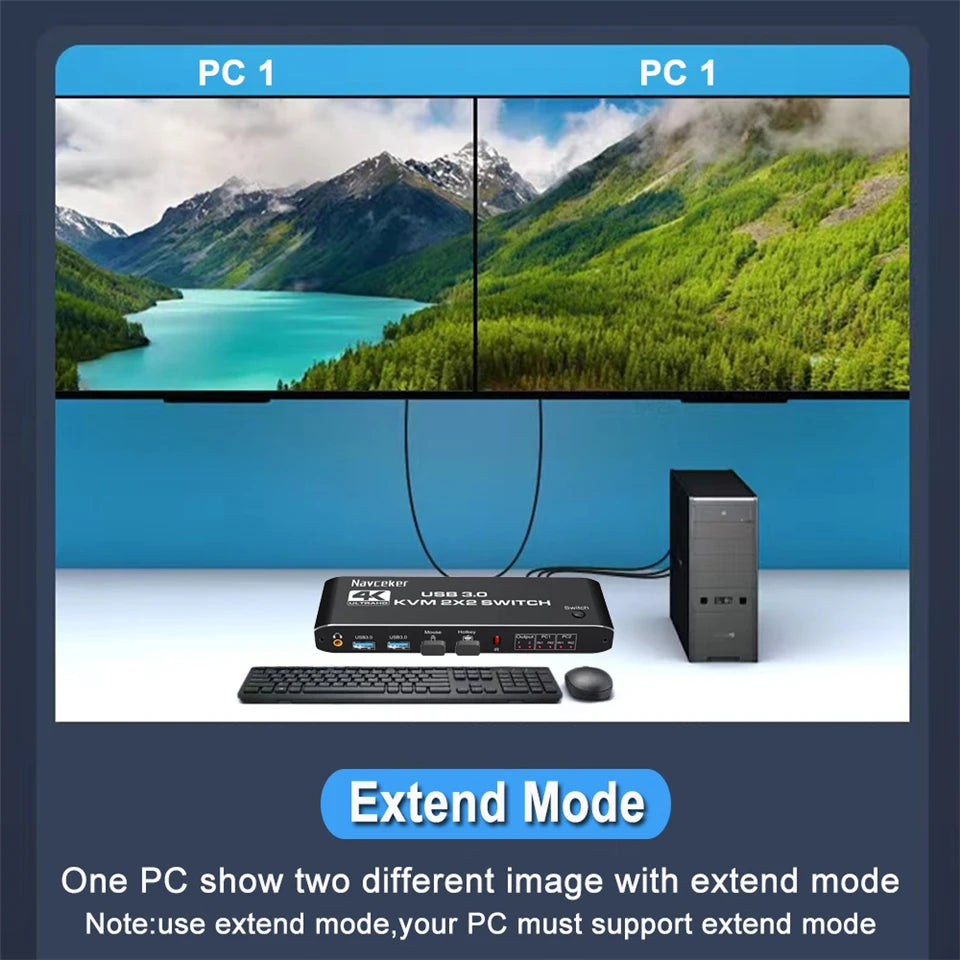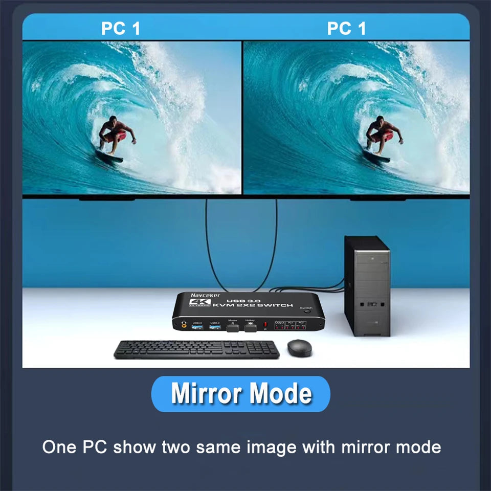 [HDMI KVM USB switch dual monitor]: Navceker KVM Switch allows control 2 computer with one set of controls (keyboard and mouse) and two display screen. Realizes 2 in and 2 out free selection synchronous switching. You can centrally control and manage hosts laptop or game console without having to move from one workstation to another.