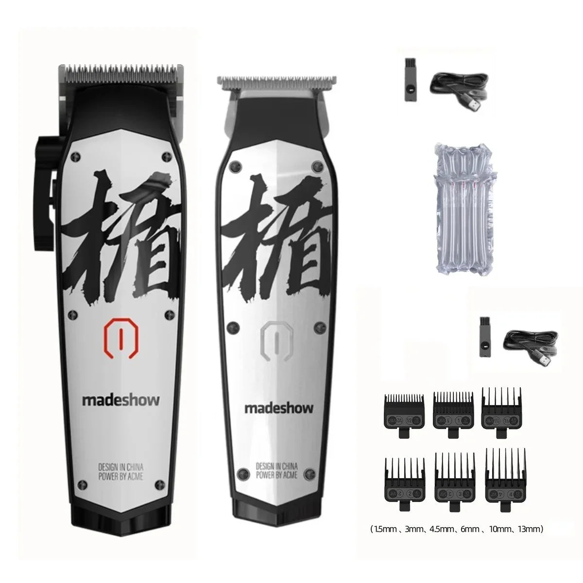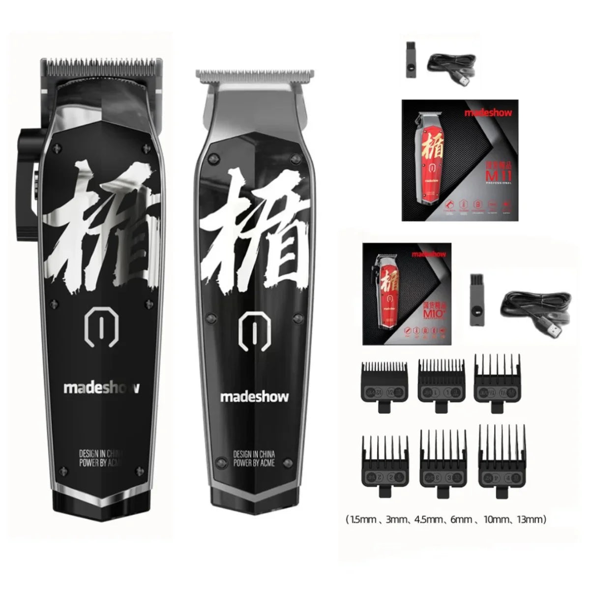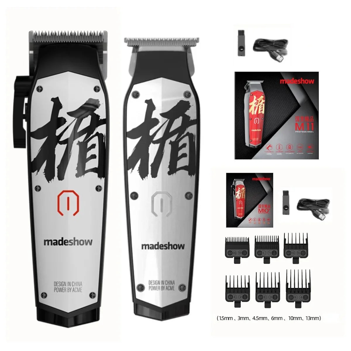 New D0 MadeShow M10M11 Professional Hair Clipper + Trimmer Set 0.1mmHair Cutting Machine Cutting T Blade High Speed High Quality