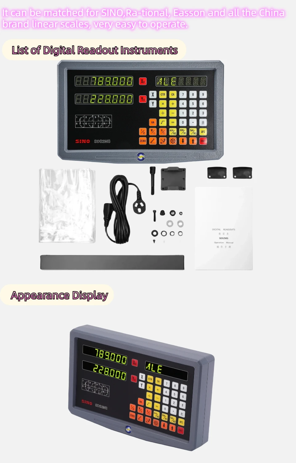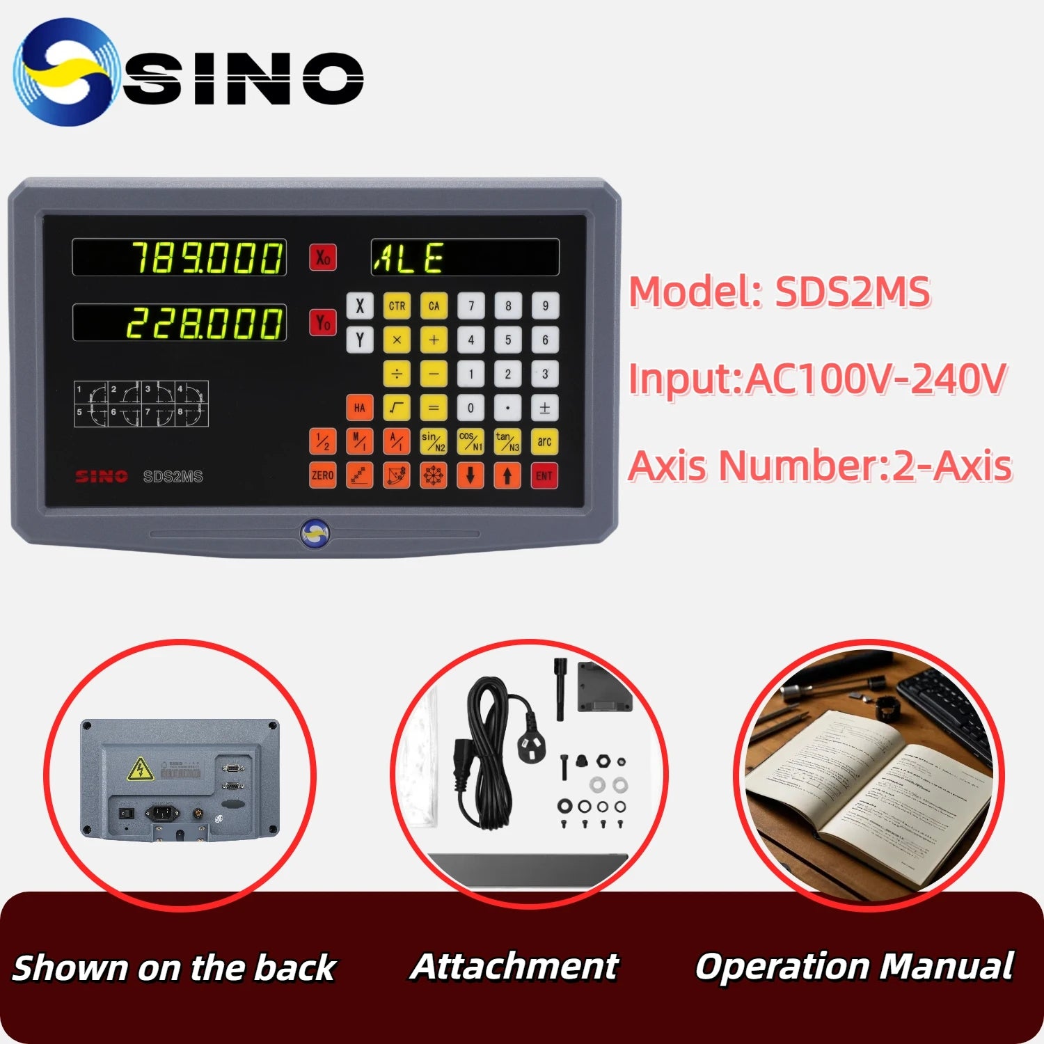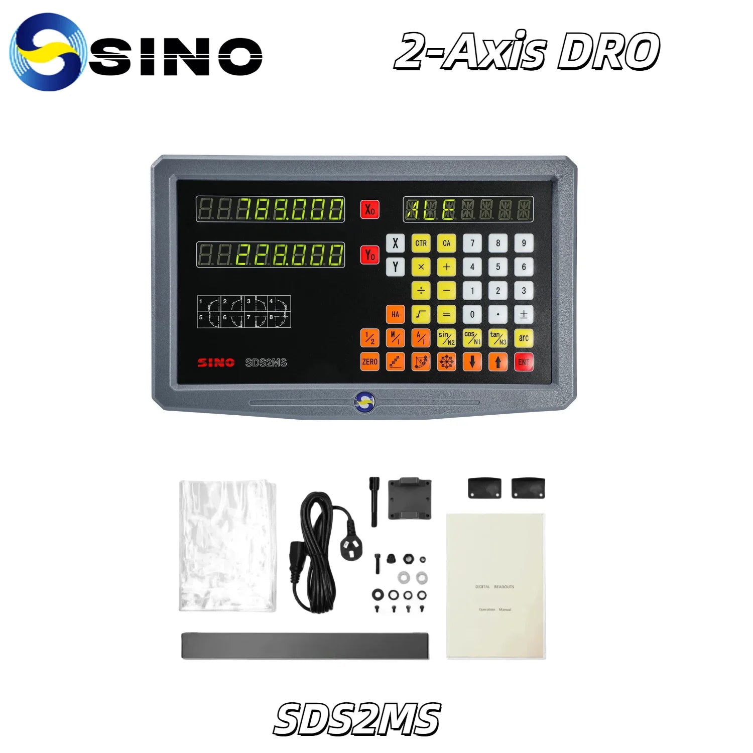 New SDS2MS 2 Axis DRO Digital Readout AC110V/220V Display and 2 Pieces 100-1000mm Linear Scale Encoder For Milling Lathe Machine