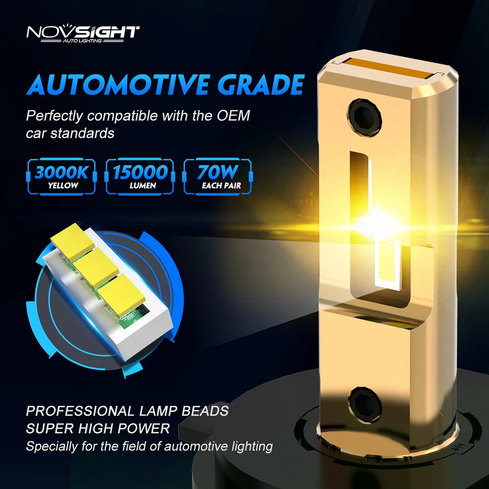 Novsight F03Y H7 LED Headlight H4 LED Lights For Car 12V LED H11 9005 HB3 9006 HB4 3000K 15000LM 70W Auto Fog Light Yellow Bulbs