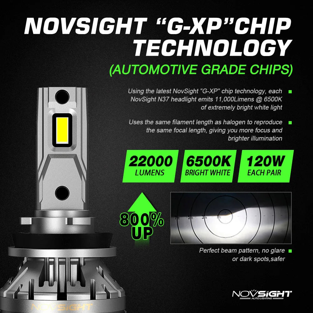 NOVSIGHT H7 LED Headlight For Car H4 LED H1 H11 9008 H13 9005 9006 HB3 HB4 6500K 120W 22000LM Auto Headlamp Fog Light Bulbs
