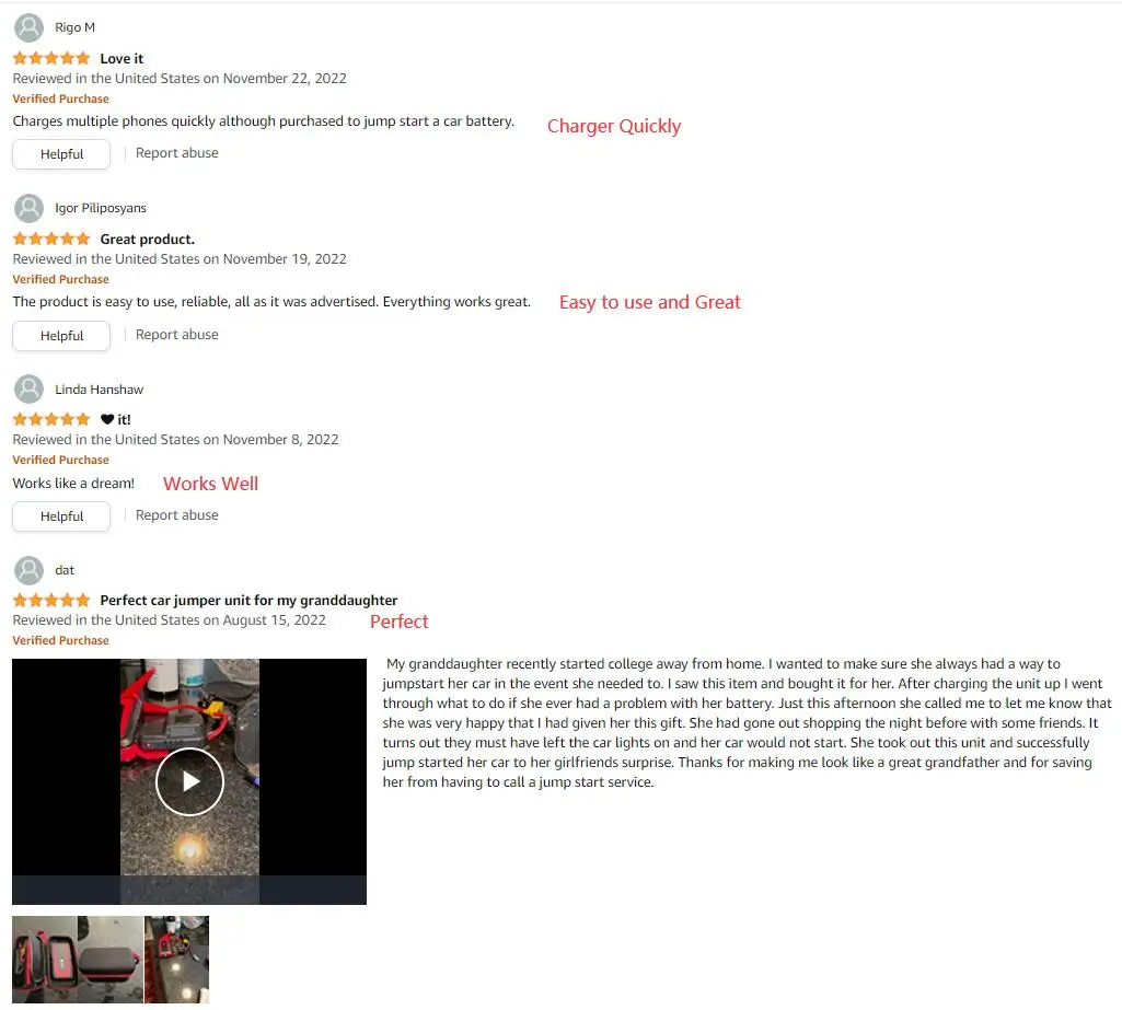 The large screen displays data compared to traditional car jump boxes or car jumper cables kit, it's very user-friendly.TP20PRO jumper pack equip super bright LED light which support 4 modes(Solid, SOS, Alert, Red warning). It is useful in many situations, such as checking for engine failure at night, outdoor adventures / accidents, calling for help, warning of other vehicles, etc.