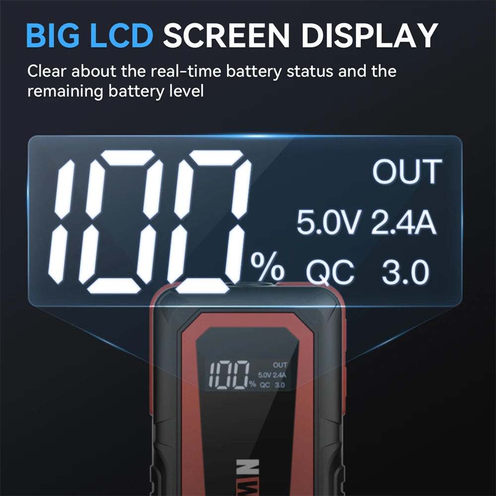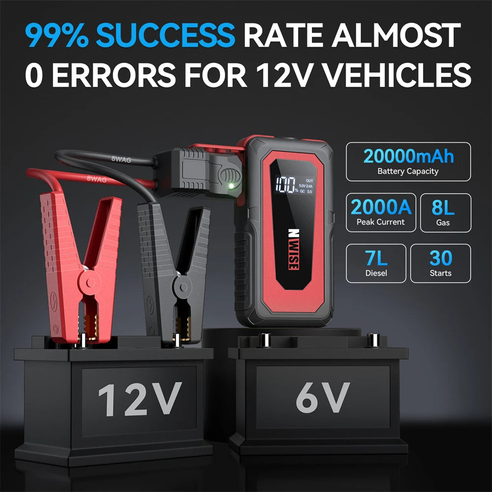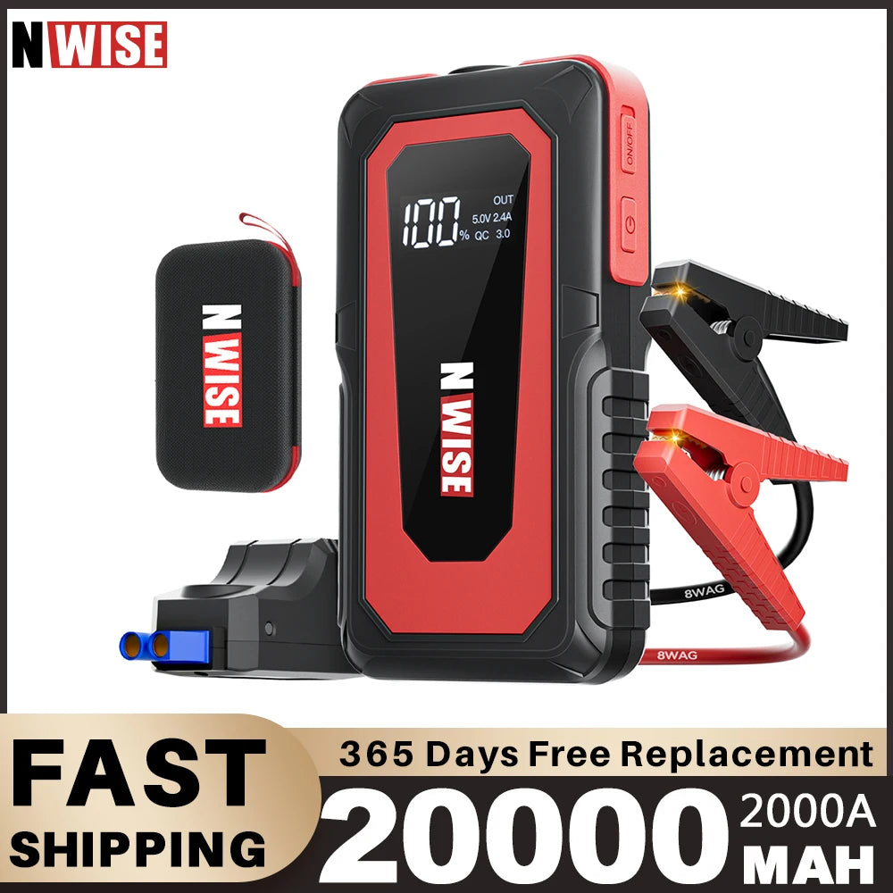 NWISE Car Jump Starter Device 20000mAh 2000A Peak Car Battery Booster Petrol Diesel LCD Screen Emergency Charger For Car Truck