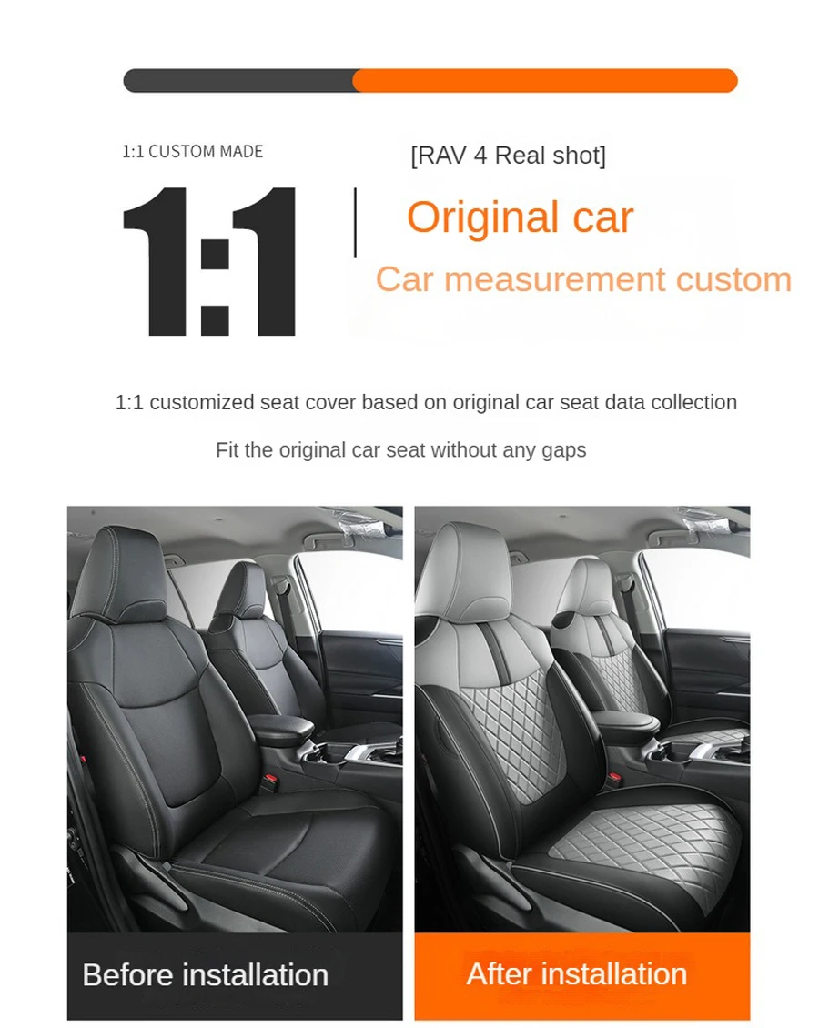 These full-cover seat covers are strictly customized according to the original seats sizes, accurately covering the original seats, protecting the original seats from wear, stains, and animal hair, and giving your car interior a new look.