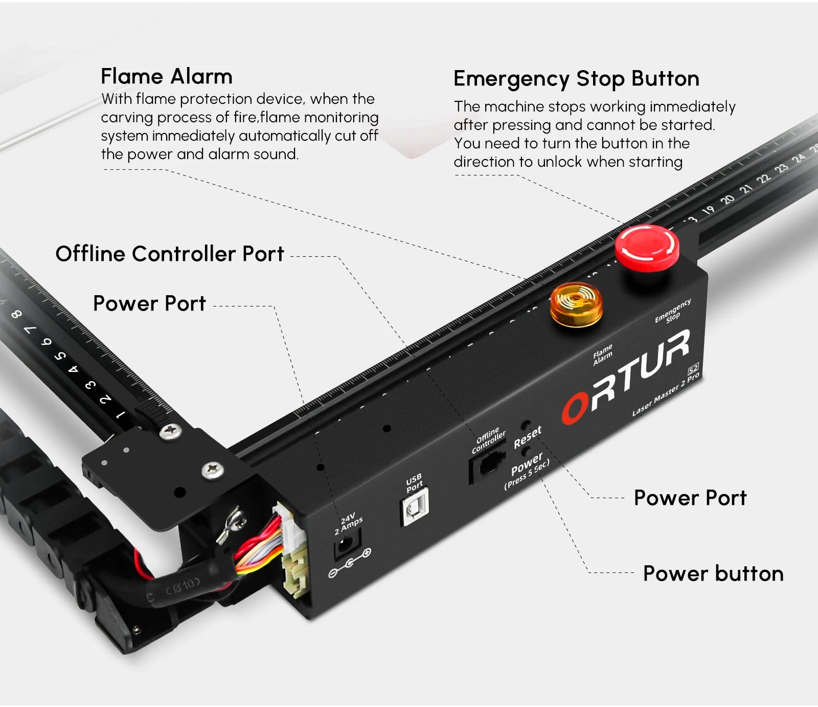 2. Laser Beam Safety Guard: When the machine or computer from crashing during the engraving process, it would automatically stop the laser.