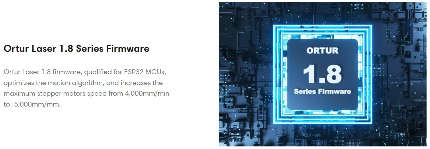 Ortur Laser 1.8 Series Firmware has been optimized for faster speed engraving. Taking advantage of the faster ESP32 McU.