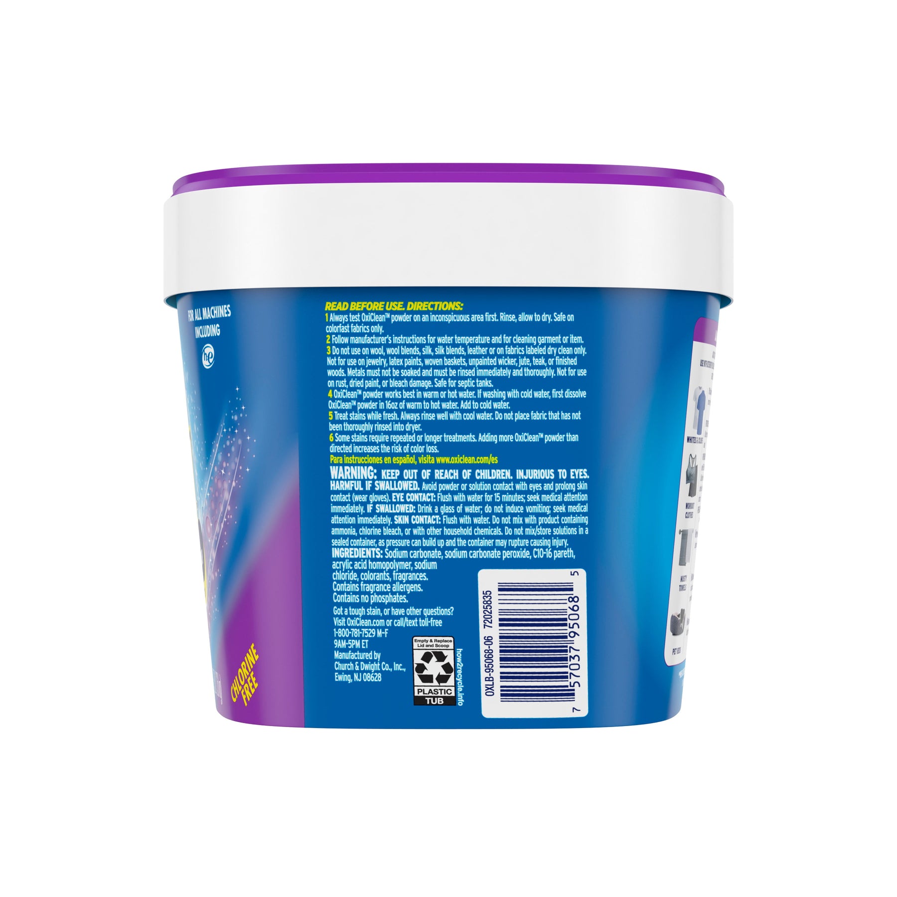 Harness the power of oxygen to remove tough stains and odors with OxiClean Odor Blasters Versatile Odor and Stain Remover Powder from America’s #1 stain remover additive brand(1), tackles big and small stains and odors, for laundry and home. This oxygen-powered, chlorine-free, color-safe laundry stain remover and odor remover helps remove stubborn smells and stains from machine-washable clothing, sheets, towels, workout clothes, shoes, team uniforms, and pet bedding, attacking tough odors like musty towels, body odor and sweat so items smell clean and refreshed. For best results, presoak items in a mixture of OxiClean powder stain cleaner and water following label directions. Then add powder per label directions to the washer, add items, and wash with detergent. Safe to use as a laundry booster in HE and standard washing machines. OxiClean Odor Blasters Versatile Odor and Stain Remover is not just for clothes. Mix with water as directed on label to eliminate odors from machine-washable fabrics and remove stains from hard surfaces in the kitchen, bathroom, and around the home. This 5 lb container is enough for big or small messes. From stain removers and laundry boosters to household cleaners and much more, OxiClean offers a product to fit your needs. (1) Based on units sold