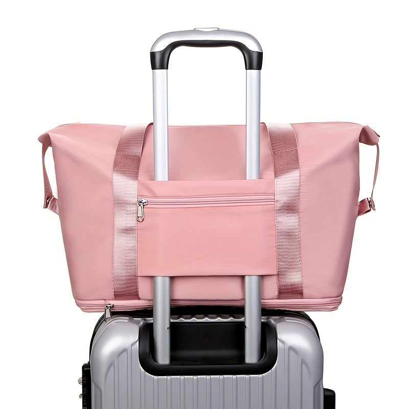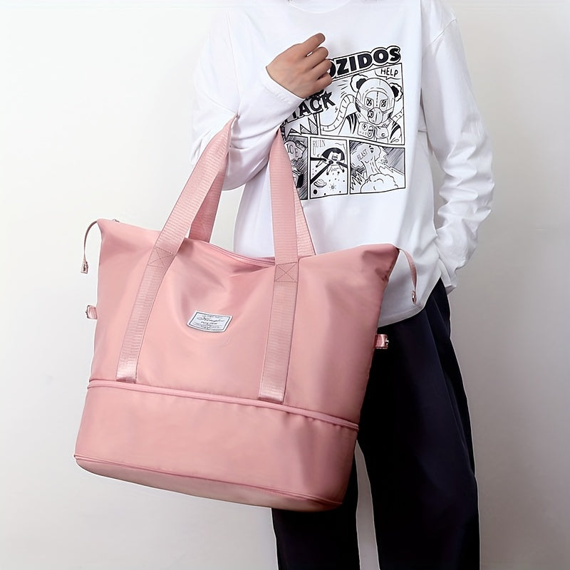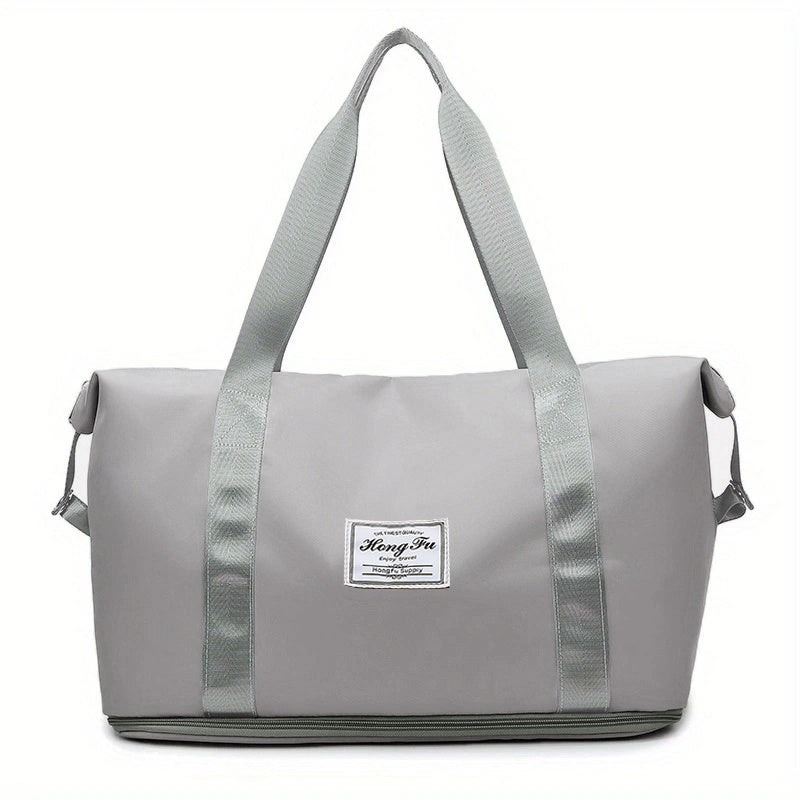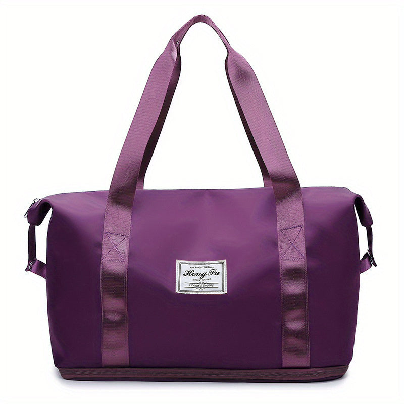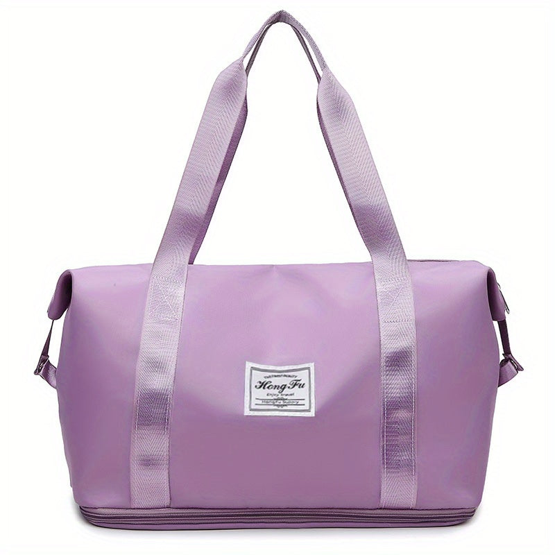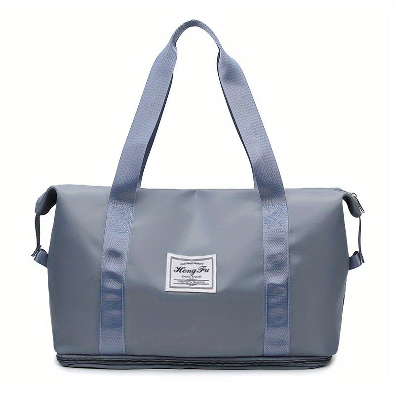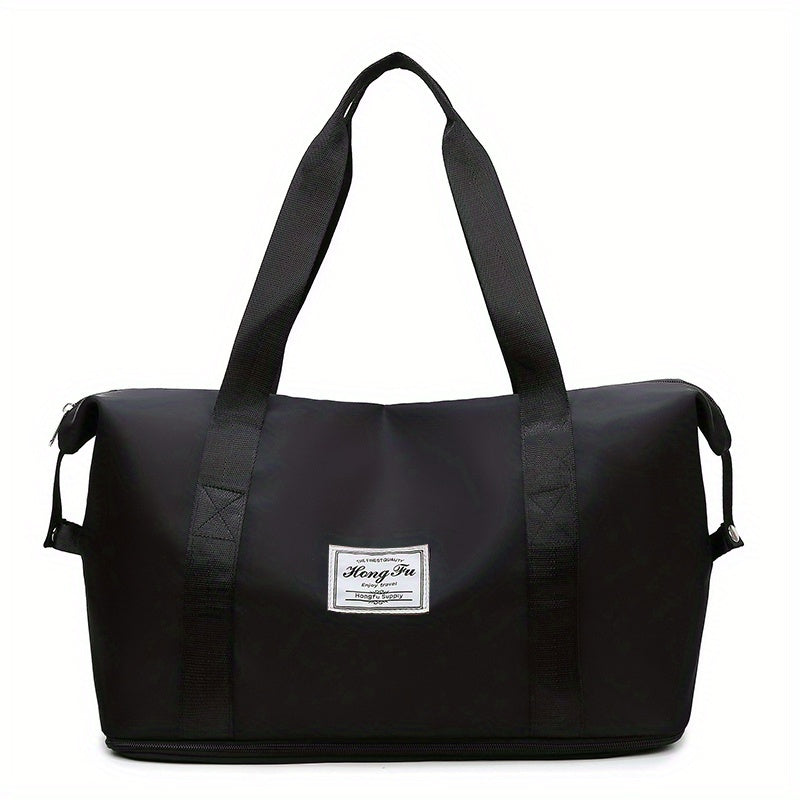 Patch Detail Zipper Duffel Bag, Travel Storage Bag Carry-On Bag, Simple Weekender Overnight Bag