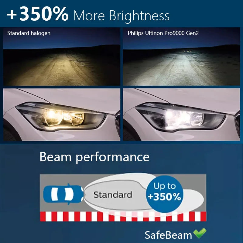 With exclusive +Lumileds automotive LED - Philips H4 H7 H11 LED Ultinon Pro9000 New Gen2 H1 H8 HB3 HB4 HIR2 +350% Bright Lumileds LED 9005 9006 9012 Car Light 5800K White