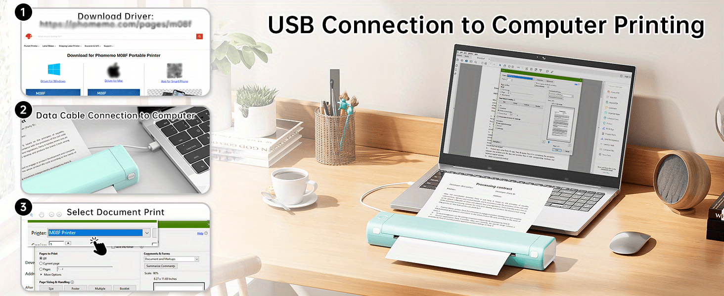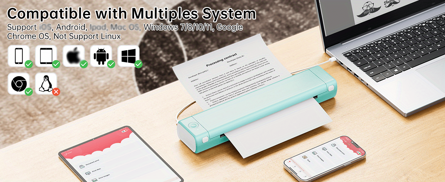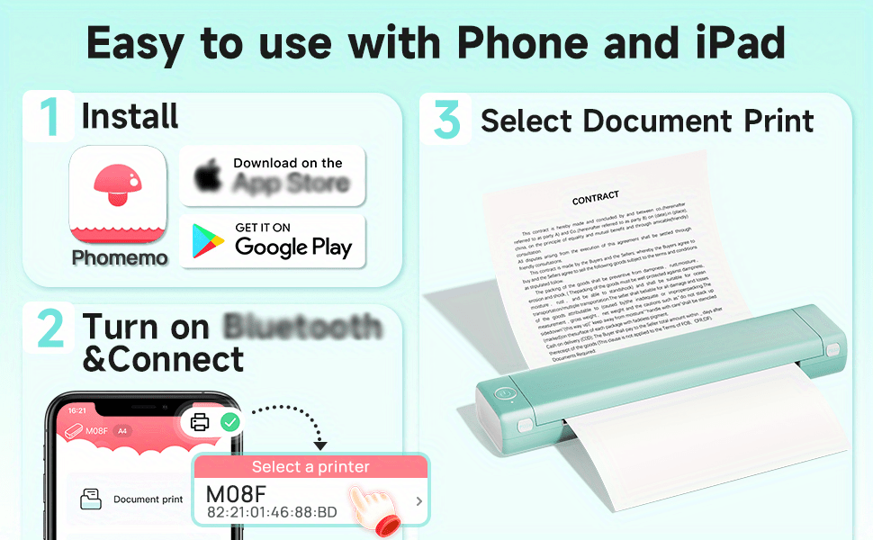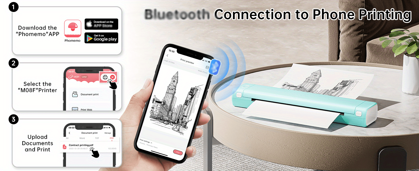 Inkless Printer - M08F portable printer wireless for travel uses advanced thermal direct technology to print without any expensive carbon/ribbon/ink, each thermal paper costs only $0.14, saving you at least hundreds of dollars per year compared with traditional inkjet printers.