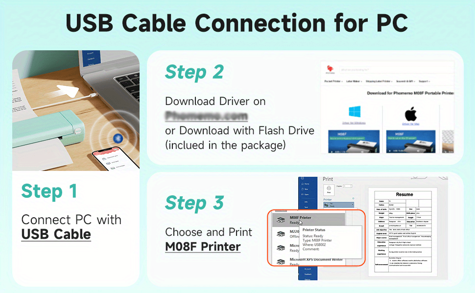 Impressive Print Quality - M08F wireless printer is equipped with high-quality print head, with a print life of more than 50 kilometers, helping you to print easily and achieve the best results of clear printing even can keep at least 10 years. (Note: black and white printing)