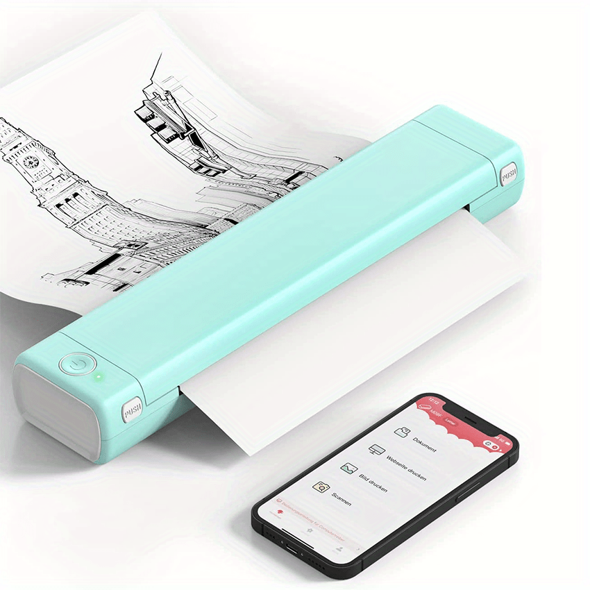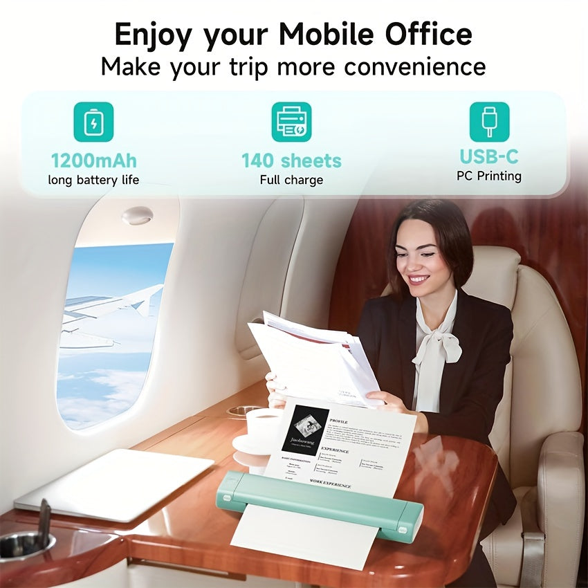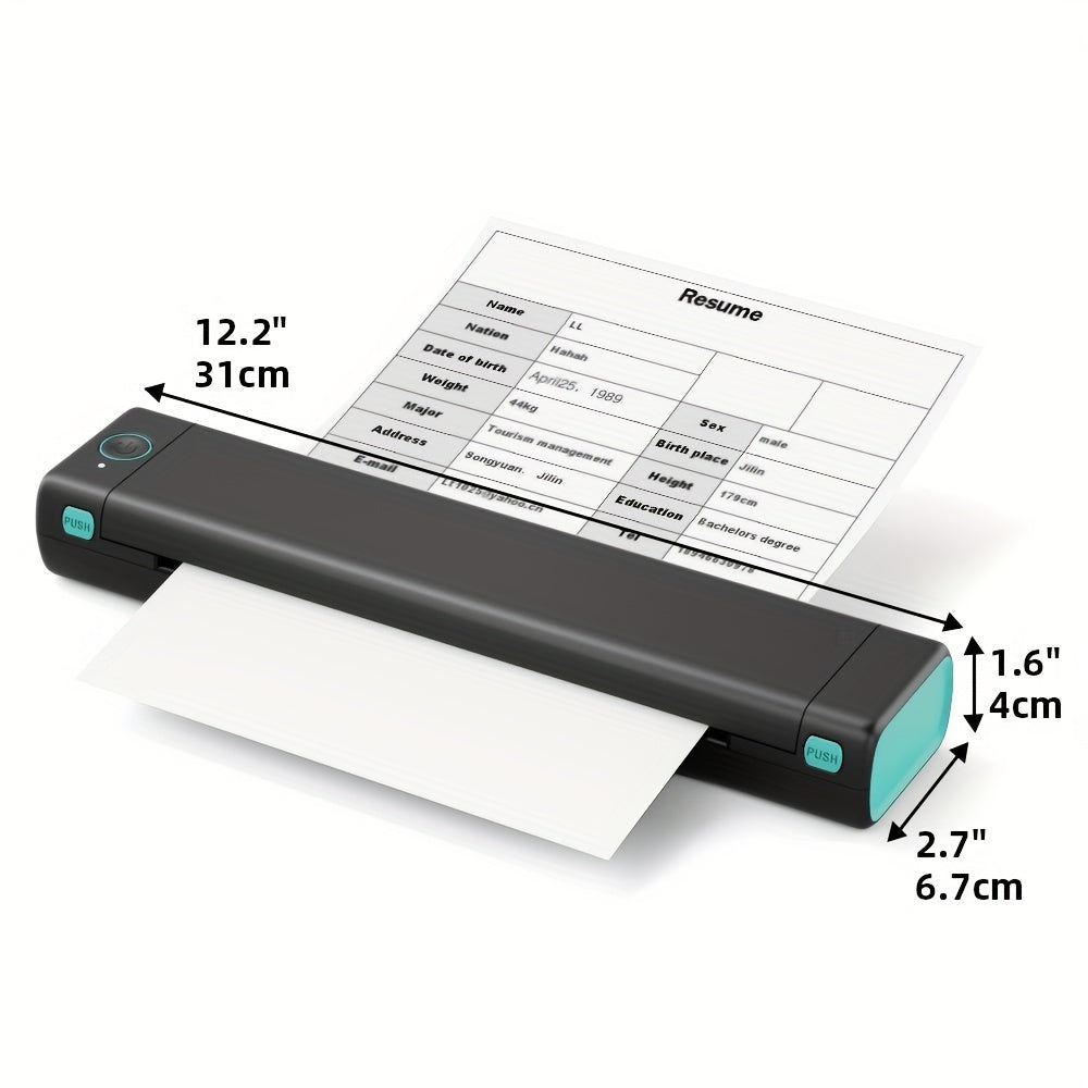 Long Battery Life - This travel printer has a built-in 1200mAh lithium battery, which can last for 20 hours when fully charged, and can print 140 sheets of 8.27" X 11.69" A4 thermal paper, which is a great helper for the emergency scenarios, such as assignments,study materials,contracts,office documents,inventory list,business check,shipping labels,invoice etc