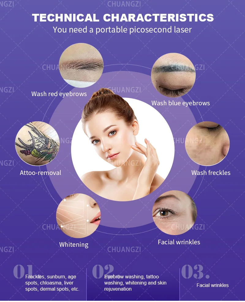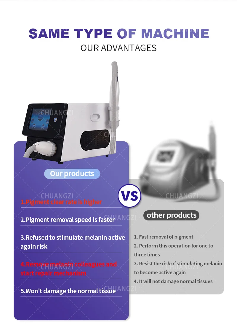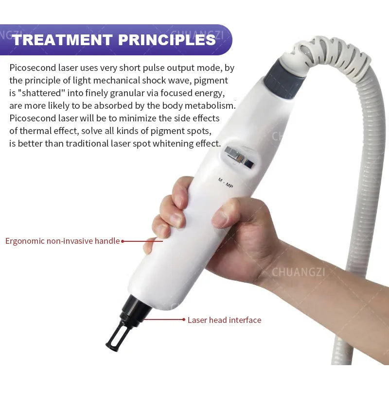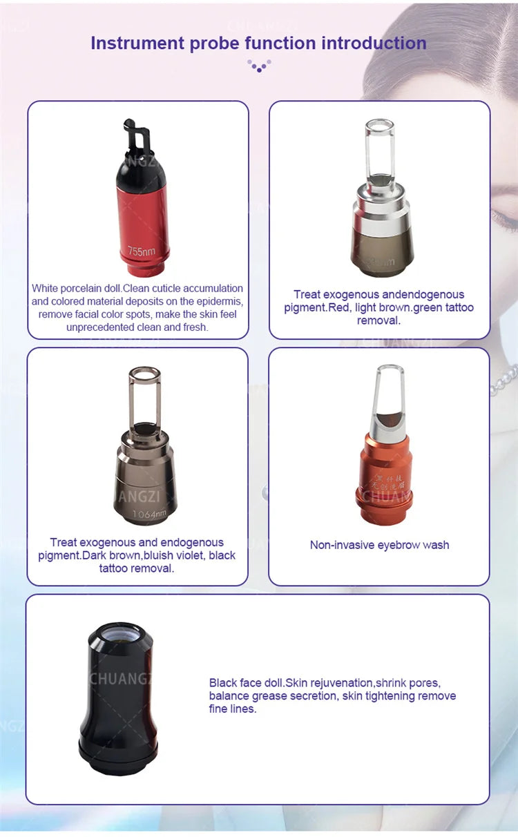 1.Q-switched Nd:yag laser applies the explosion effect of laser, which can permeate the cuticle efficiently to the pigment mass in the derma.