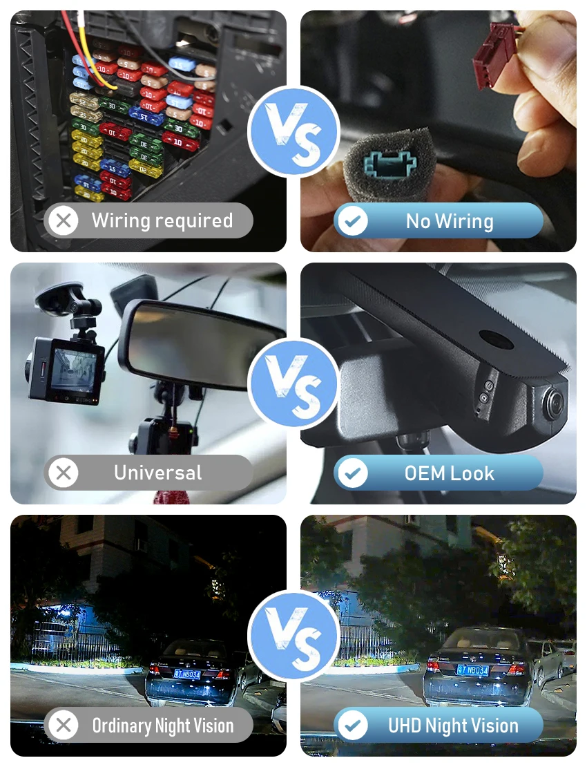 The front and rear cameras are recorded and saved at the same time, and the multi-directional high-definition recording provides more favorable evidence for driving safety.170° ultra wide-angle camera provides crystal image without any delay and reduce blind spots, comfortably monitor 3 lanes, reduce blind spots, capture license plates, road signs, and other critical details on the road.