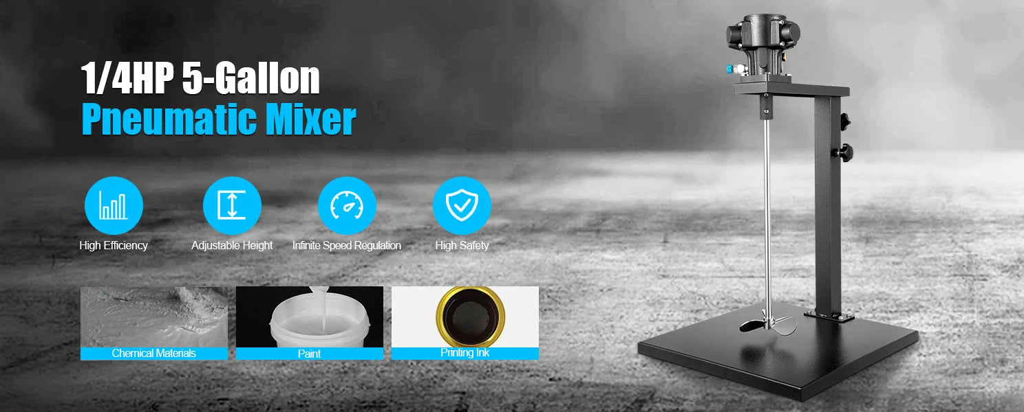 High Safety: The pneumatic motor has an overload protection function and high starting torque, which can be directly started under load. This safe, explosion-proof, and spark-free mixer gives you peace of mind.