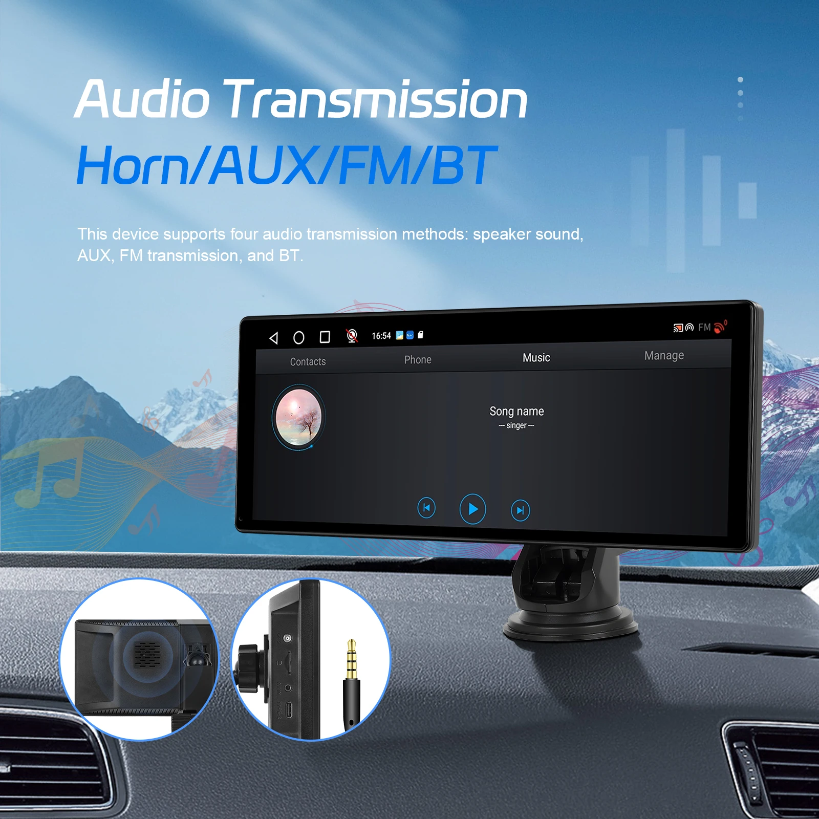 Sound transmission: speaker /AUX wire transmission /FM transmission /BT for carplay and Android auto