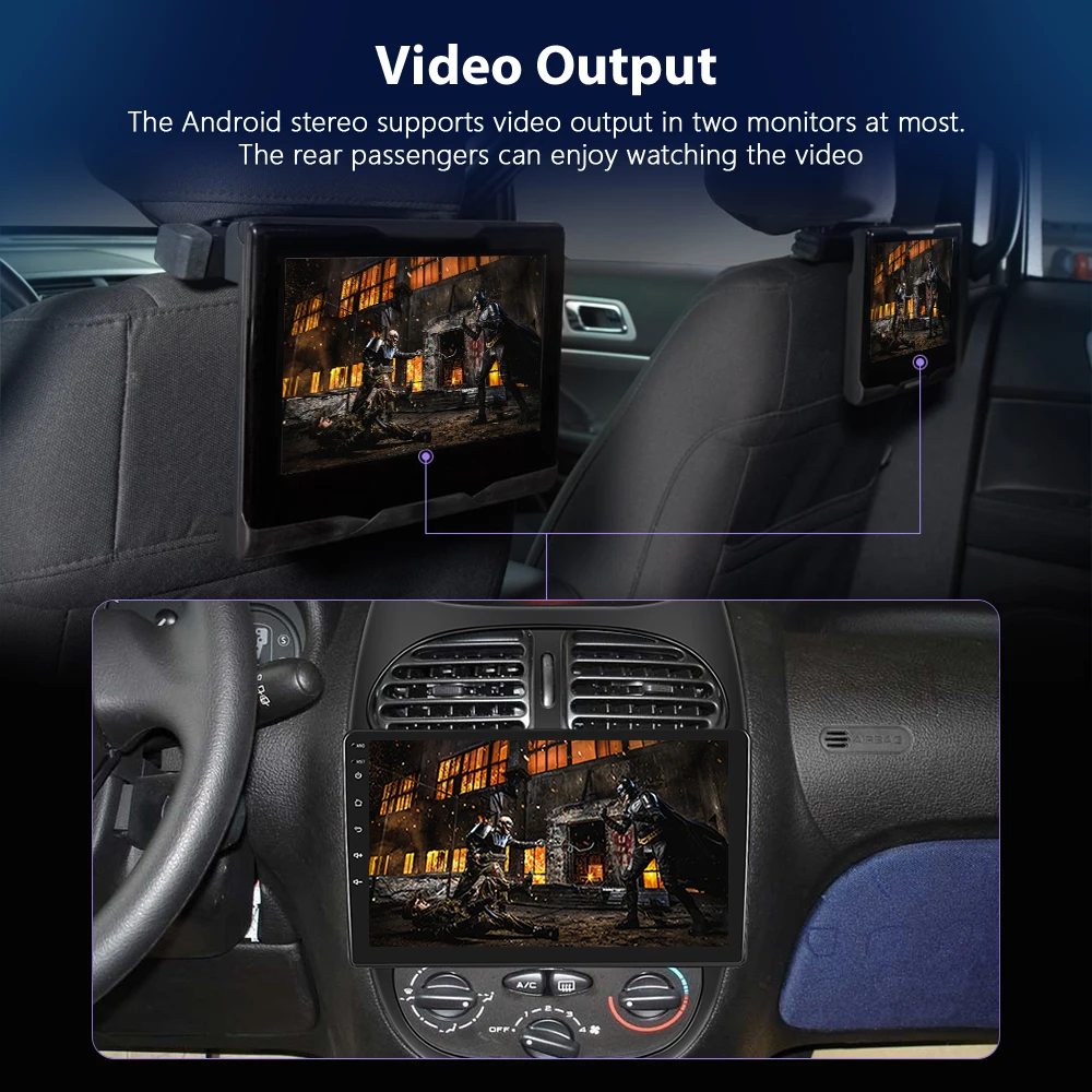 The Android stereo supports video output in two monitors at most. The rear passengers can enjoy watching the video
