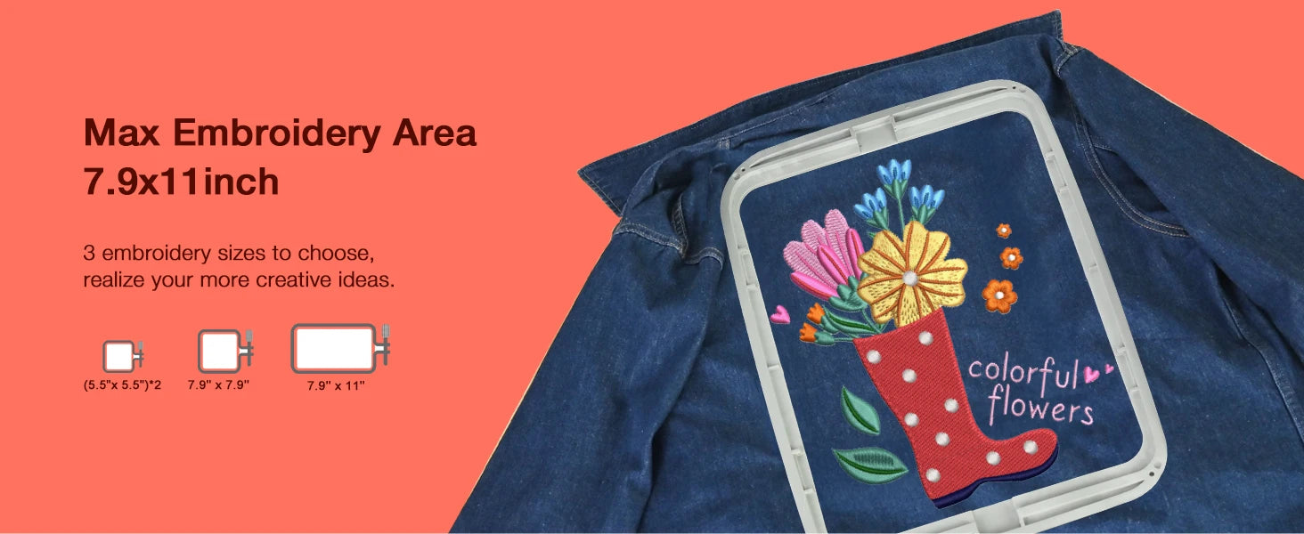 Maximum Embroidery Area: 7.9" x 11",200X280mm