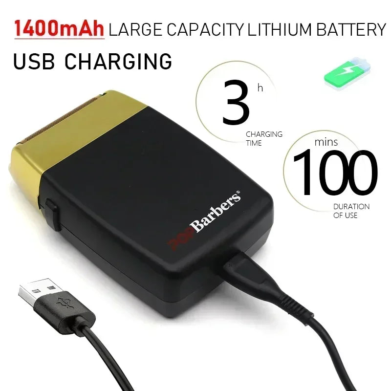 Pop Barbers P620 Professional Professional Man's Electric Shaver Double Foil Shaver USB Cordless Hair Cutting Machine 11000 RPM