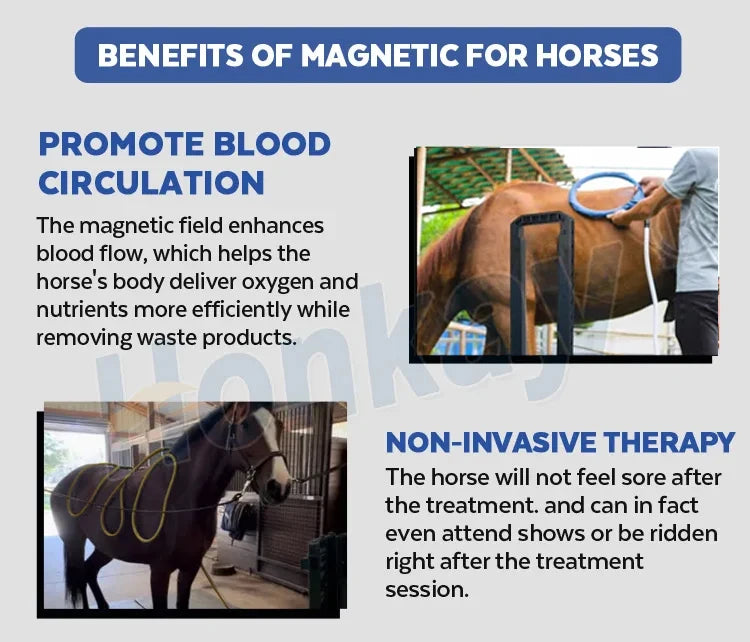 The magnetic field enhances blood flow, which helps the horse's body deliver oxygen and nutrients more efficiently while removing waste products.