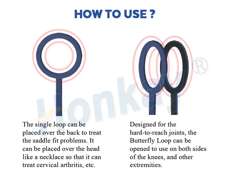 The single loop can be placed over the back to treat the saddle fit problems. It can be placed over the head like a necklace so that it can treat cervical arthritis, etc.