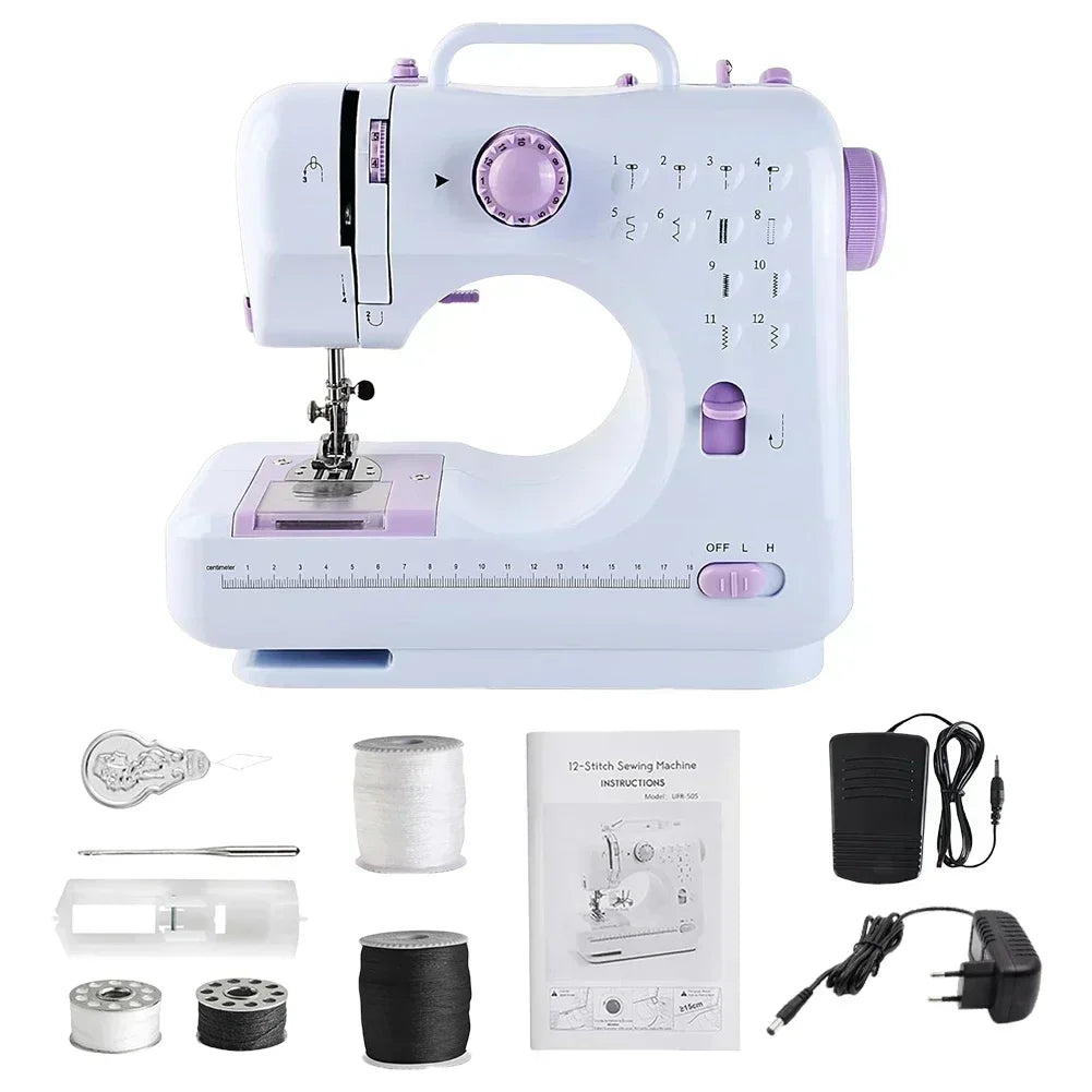 Portable Sewing Machine for Beginners Mini Electric Household Crafting Mending Overlock with 12 Stitches Presser Foot Pedal