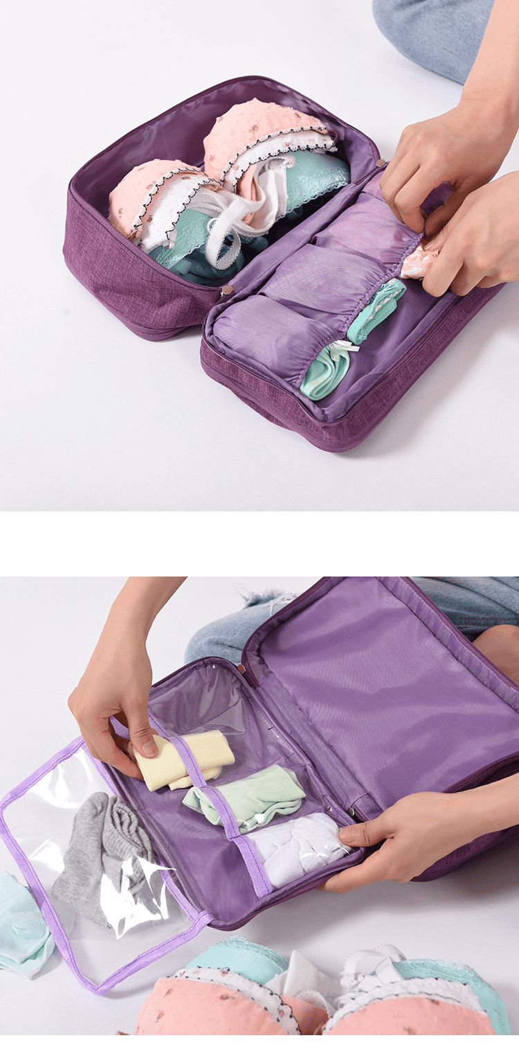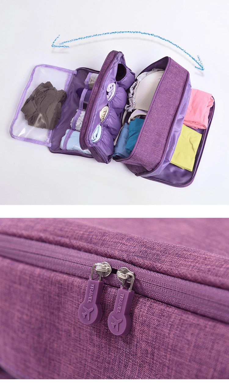 Portable Travel Storage Bag, Simple Organizer For Underwear, Multi Bag With Compartments And Zipper