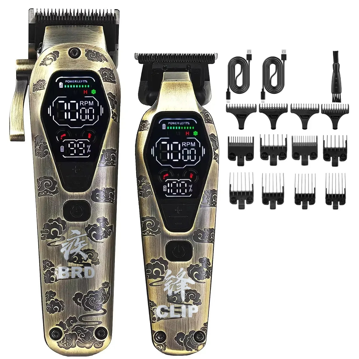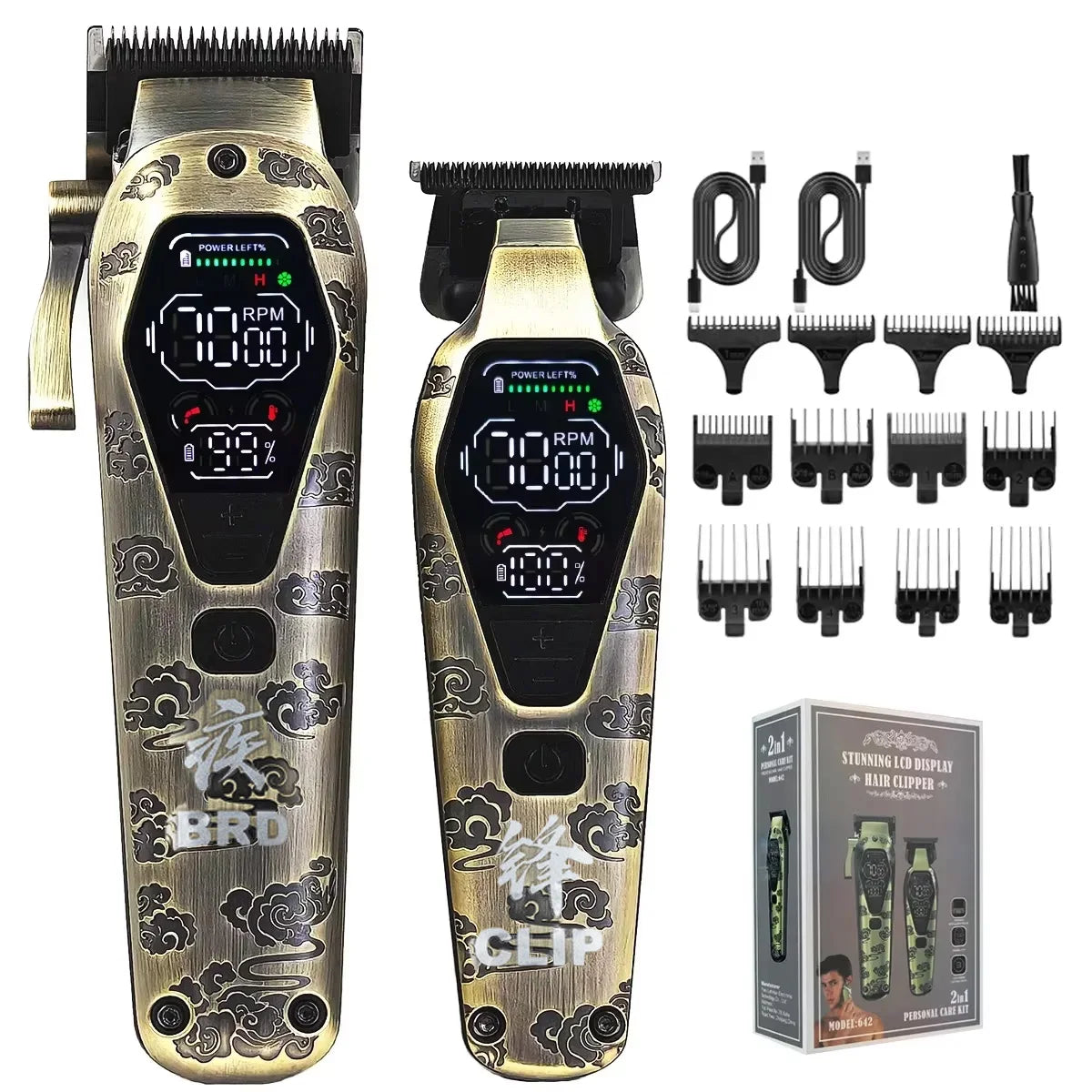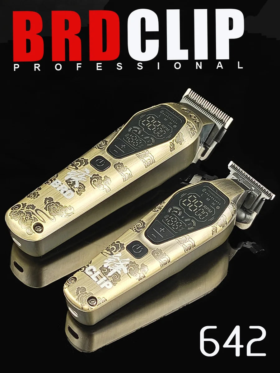 Professional BRDCL 642 FADE Blade Hair Clipper Hair Salon 10W High Power Hair Trimmer LCD Display Electric Cutting Machine Kit