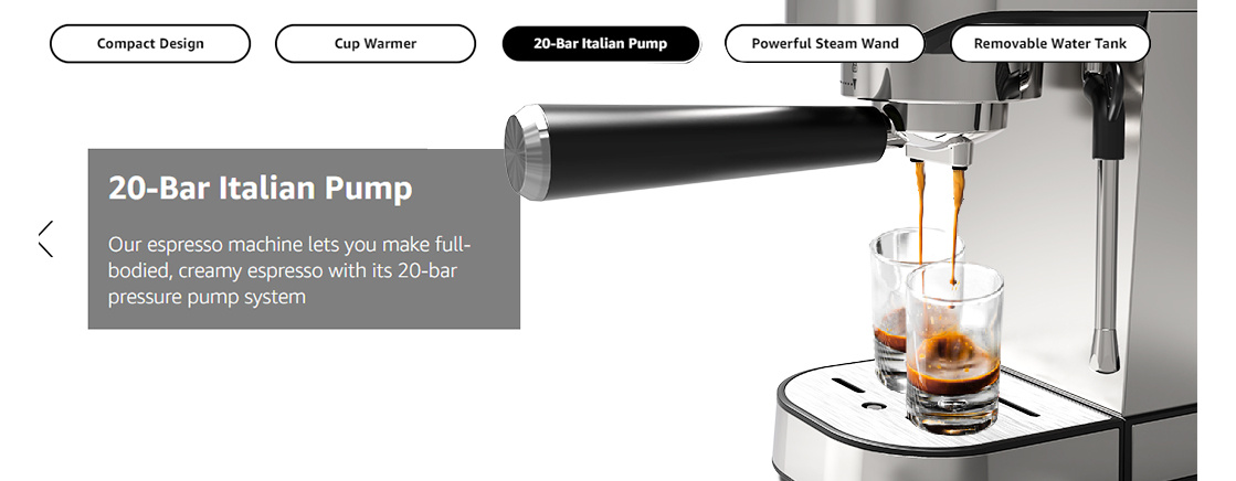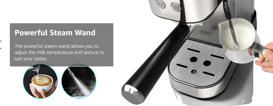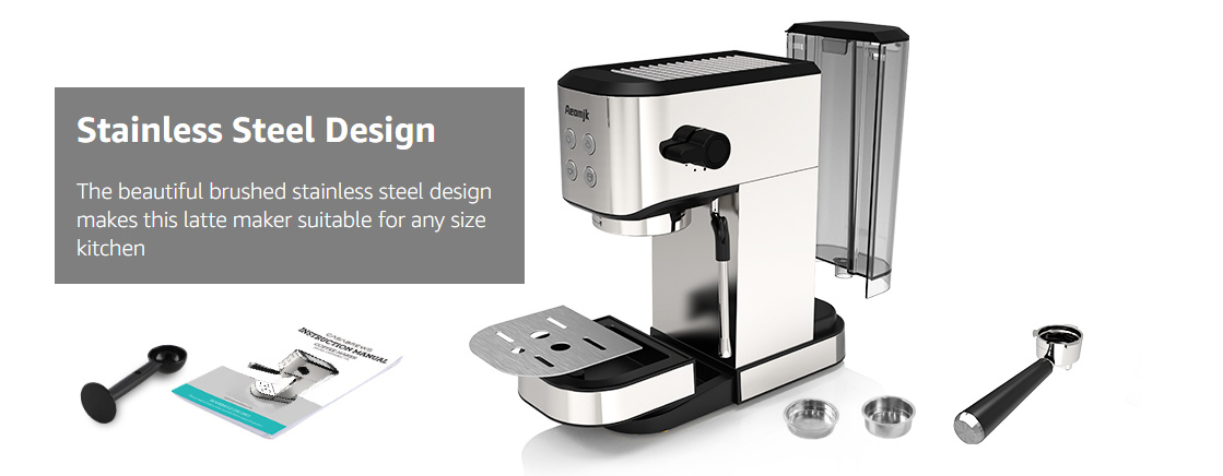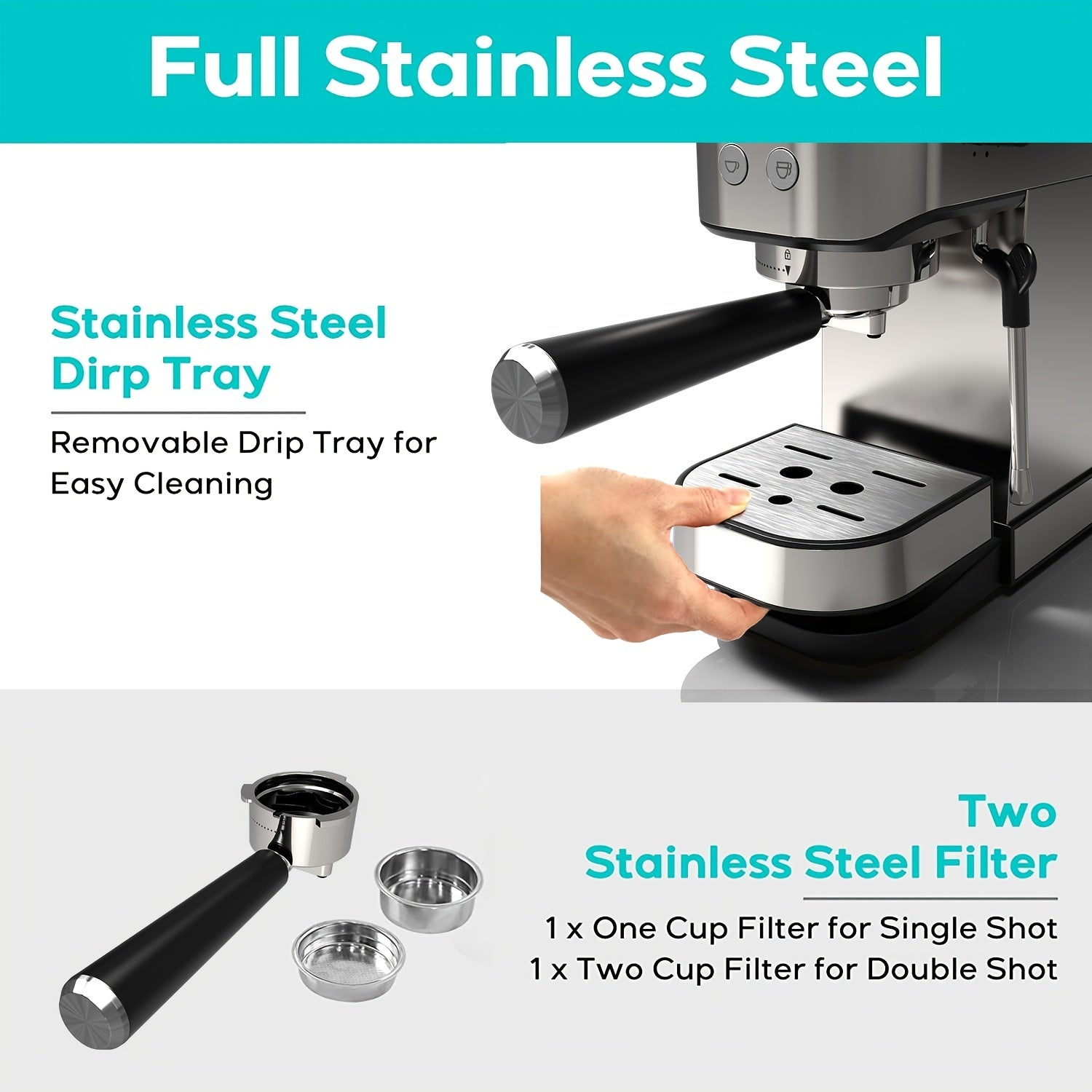 Professional Coffee Maker, 20bar Extraction System Commercial Steam System All Metal Body 1350w1L Water Tank Capacity