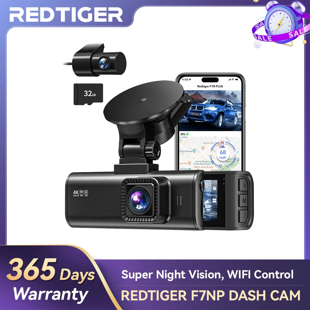 REDTIGER F7NP 4K Dash Camera for Cars 3.18” IPS Screen Mini Dash Cam Recorder Car Dvr for 24H Parking Mode Built In WiFi GPS