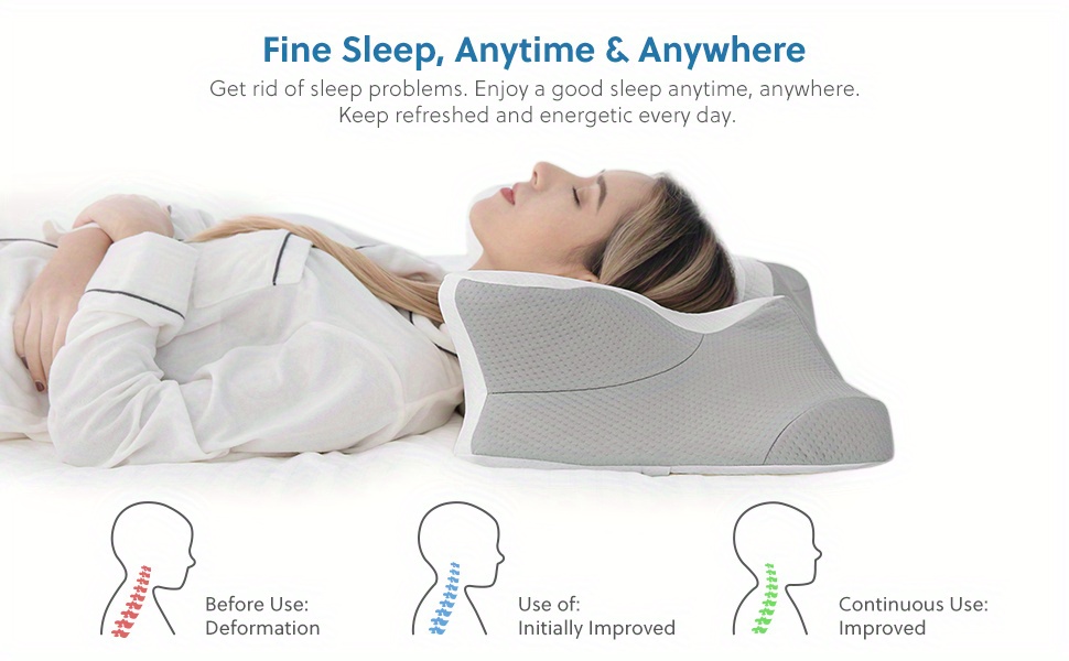 GREATLY IMPROVE SLEEP QUALITY: Proven contour memory foam support area, height, size and high density 3s slow rebound memory foam can provide soft and strong support according to your body curve, keeping the cervical vertebra, spine and breathing channels in the best state when back and side sleeping. Improving cervical strain, insomnia, headache, snoring. Greatly improving the quality of sleep, making you refreshed and energetic every day.