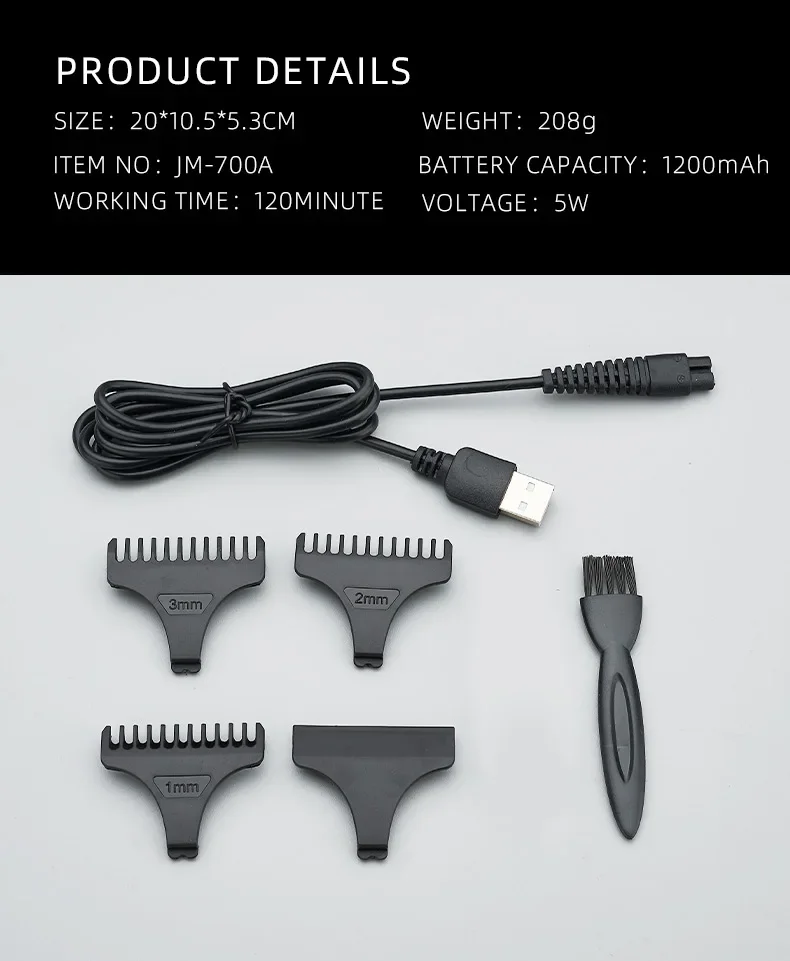 RESUXI JM-700A Professional T Bald Head Hair Trimmer Rechargeable Hair Clipper Hair Cutting Machine Beard Trimmer 0mm Shaver