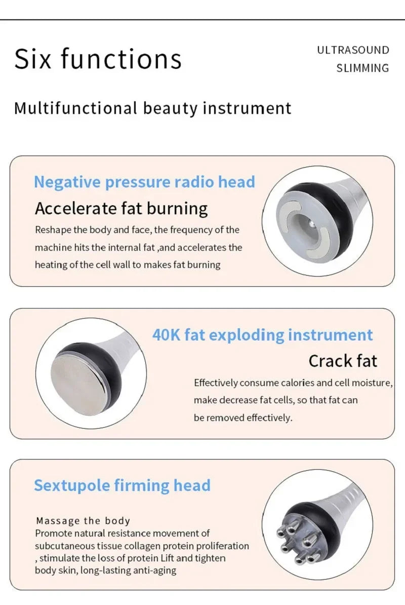 RF Tool 40K Cavitation Ultrasonic Body Slimming Machine Multi-Polar Radio Frequency Anti-Wrinkle Rejuvenation Skin Lift Tighten