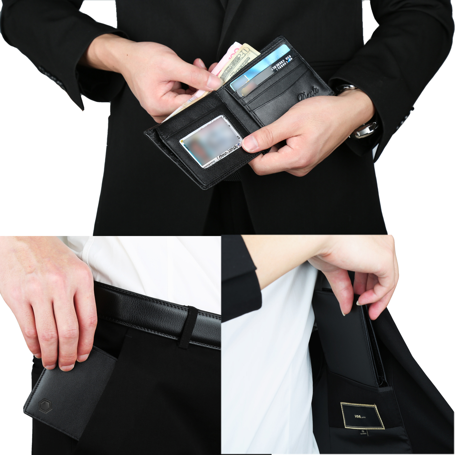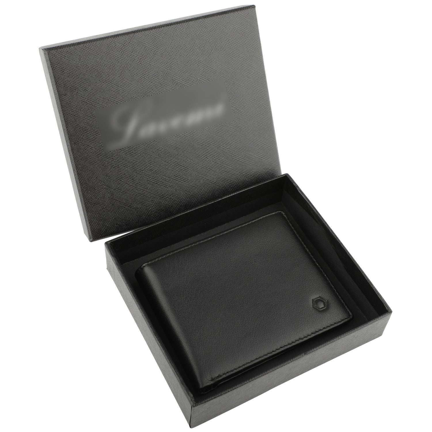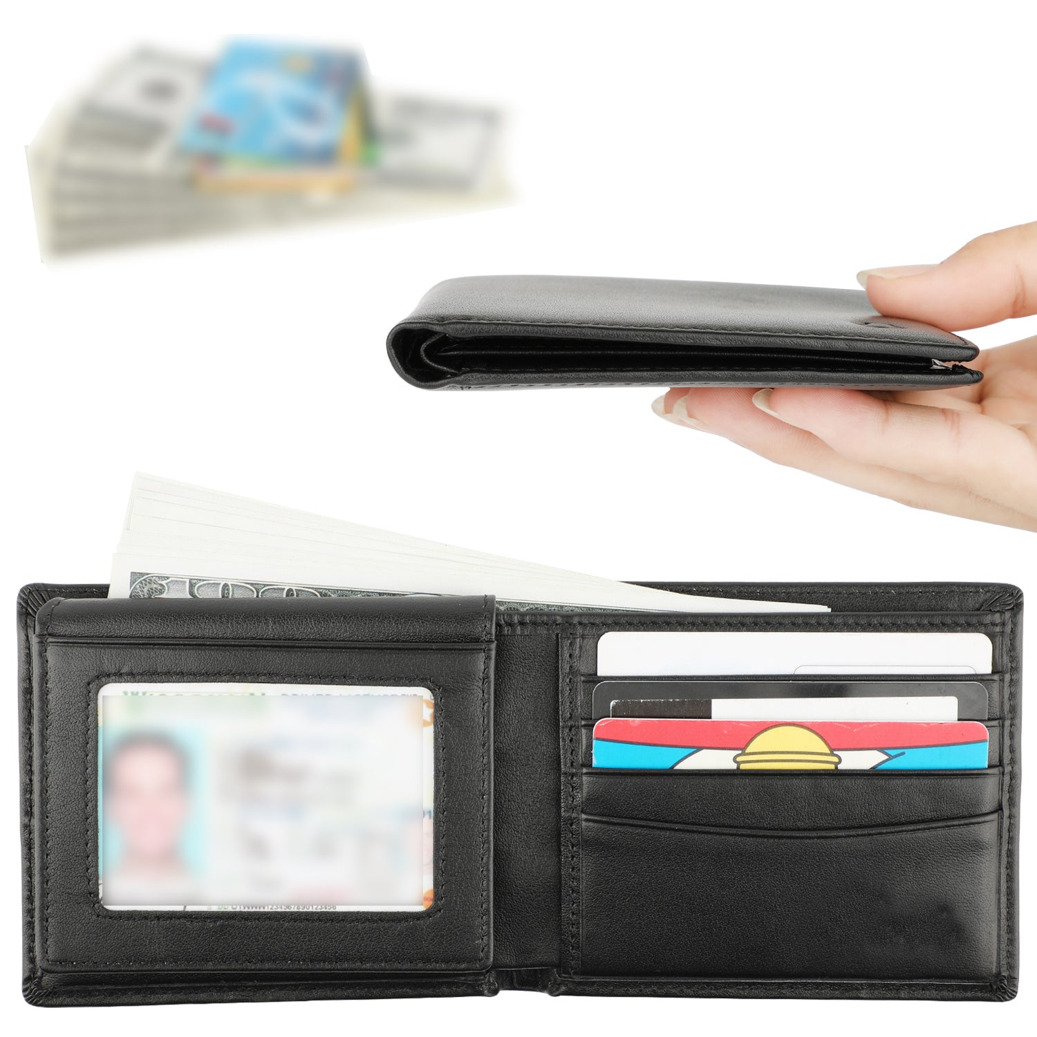 RFID Blocking Cowhide Leather Bifold Wallet For Men With 2 ID Windows Black