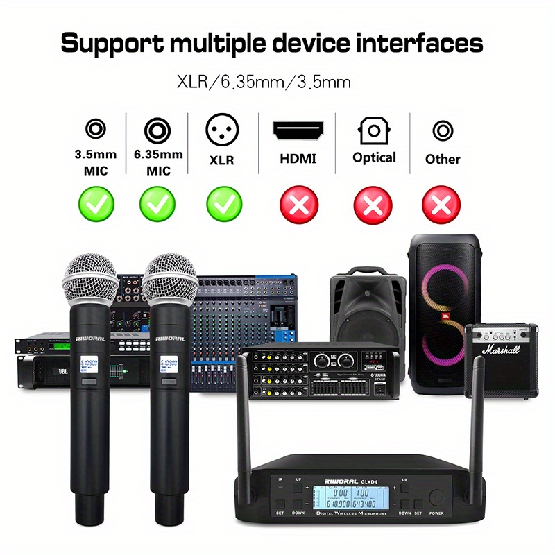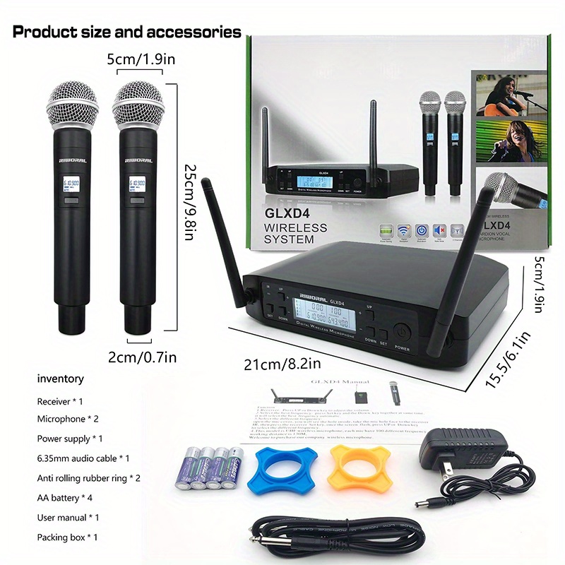 RIWORAL GLXD4 Wireless Microphone: Professional 2-channel Karaoke System For Home KTV, Parties, Conferences And Other Occasions!