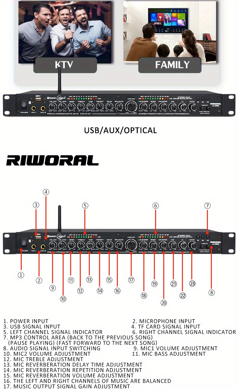 Riworal LX-8000 Digital Effector Multifunctional Digital Effector Recording, Signal Processing