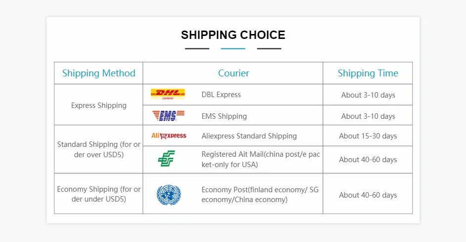 2.You can choose the shipping method before you pay it. If you want to use other shipping method, you can contact us.