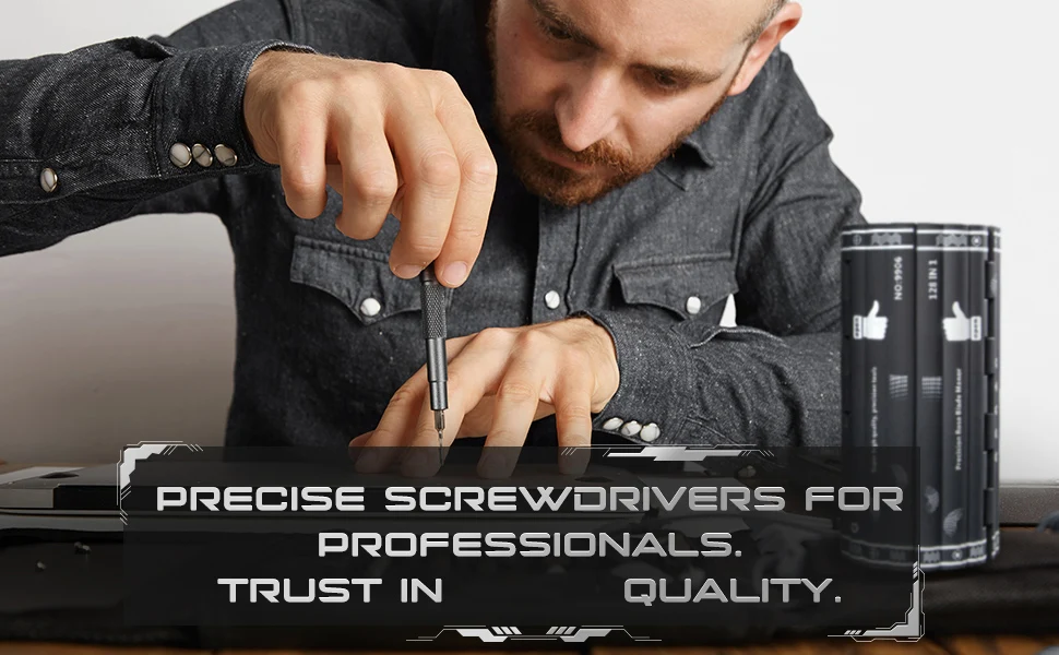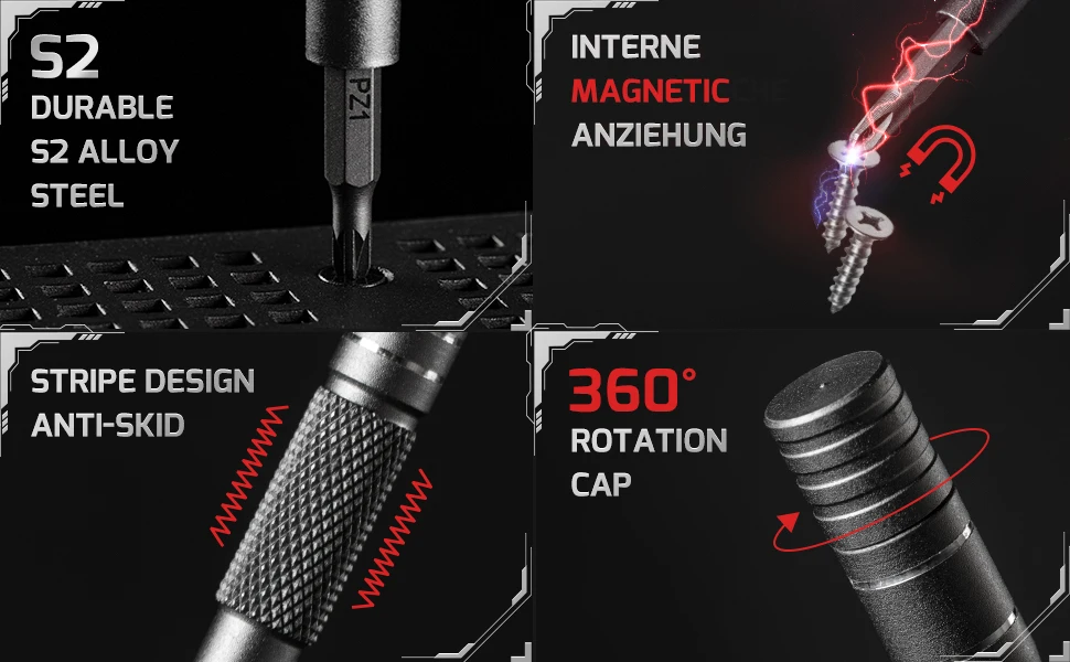 4.🔧【Practical Additional Tools】 - Our mini screwdriver set comes with a magnetic handle featuring a 360° rotatable tip, which greatly facilitates screwing. Thanks to the practical extension rod, even hard-to-reach places can be easily accessed. The set also includes other useful tools for diverse precision repairs. Simple and effective – ideal for all DIY enthusiasts.