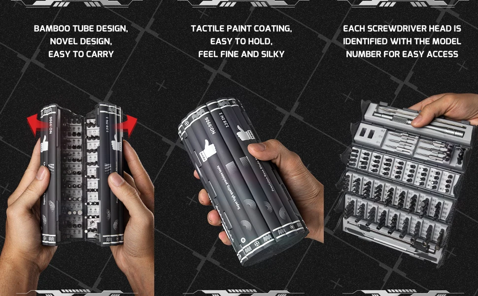 1.🔧 【Unique Bamboo Tube Design 】- Our precision mechanic tool set stands out with its lightweight and portable bamboo tube design. Opening the set feels like unveiling a mysterious gift that ignites joy in repair and creation. The touch-sensitive lacquer surface not only enhances the aesthetics but also improves grip, making each touch reminiscent of a carefully crafted piece of art.