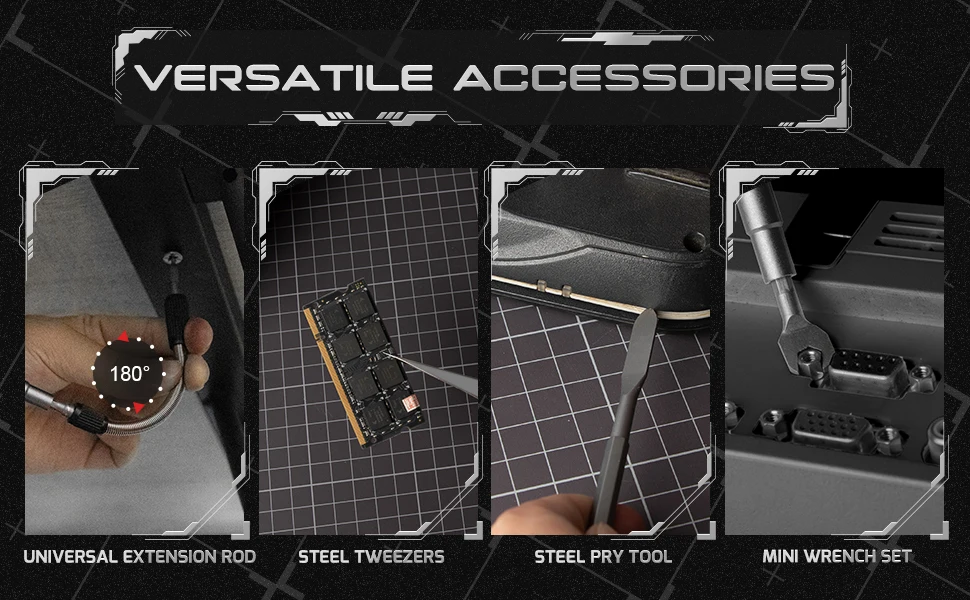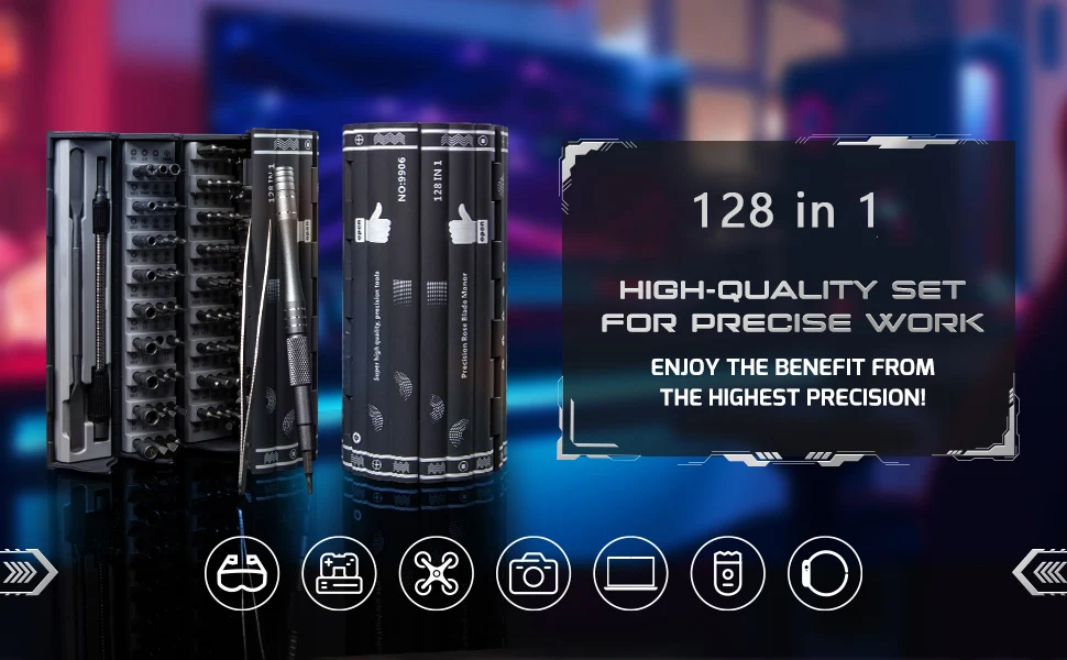 3.🔧【Diverse Types of Screwdriver Heads】 - Our precision mechanic tool set is equipped with up to 122 different screwdriver heads, including various sizes of Phillips, flathead, Torx, etc. This allows you to easily perform repairs on mobile phones, PCs, laptops, tablets, computers, gaming consoles, watches, glasses, cameras, and other devices. One set solves all problems, making your repair work simpler and more efficient.