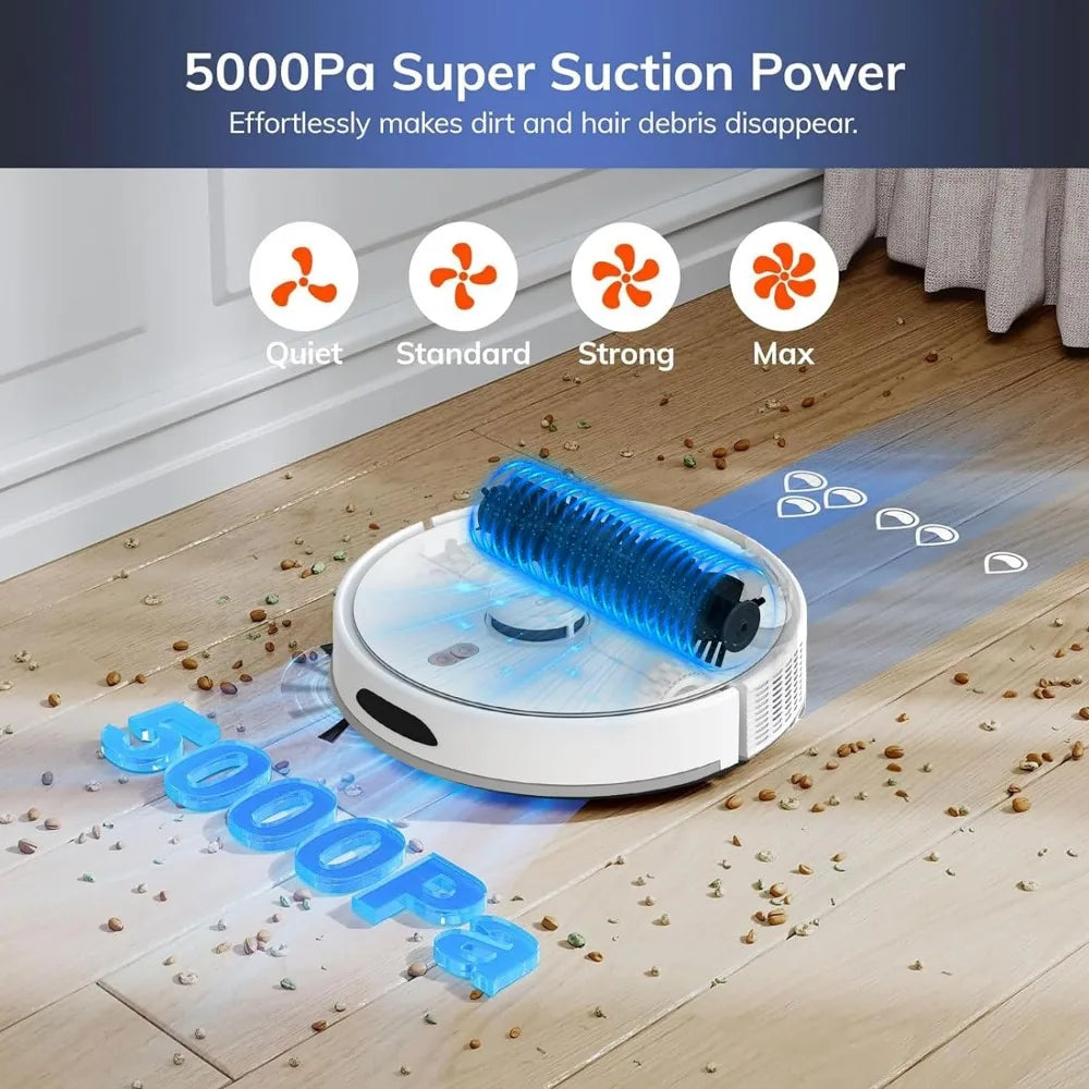 - 【Up to 5000Pa Super Suction Power】Verefa L20M Plus robot vacuum can deep clean dust in floor crevices or pet hair and debris effortless, and automatically increases suction power when working on carpets. There are 4 suction modes to choose from: Silent (1000Pa), Standard (1500Pa), Power (2500Pa) and Maximum (5000Pa).