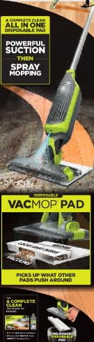 • Disposable VACMOP Pad vacuums up what other pads push around