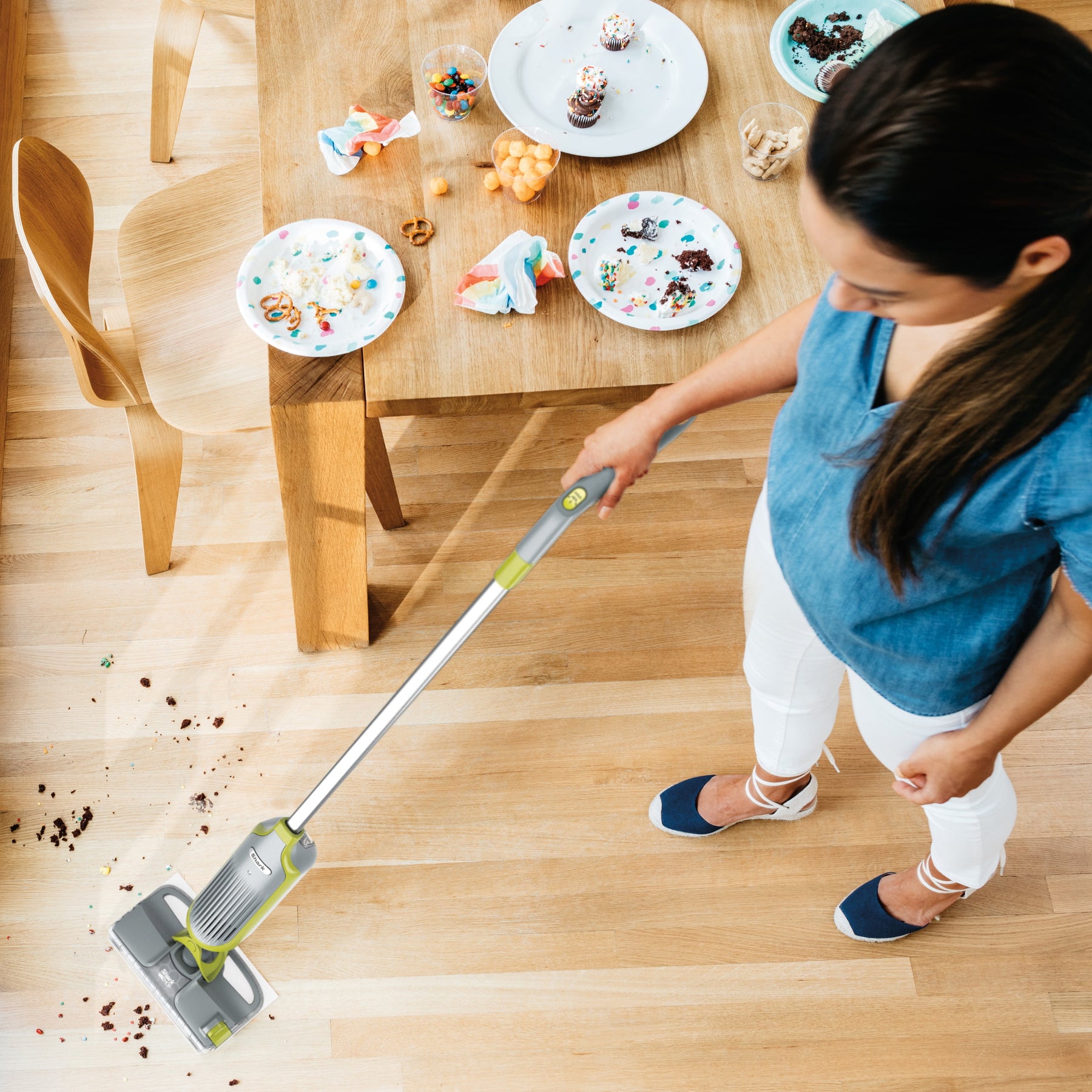 • Spray mop with VACMOP spring clean floor cleaner to scrub stuck-on grime, providing shiny clean floors