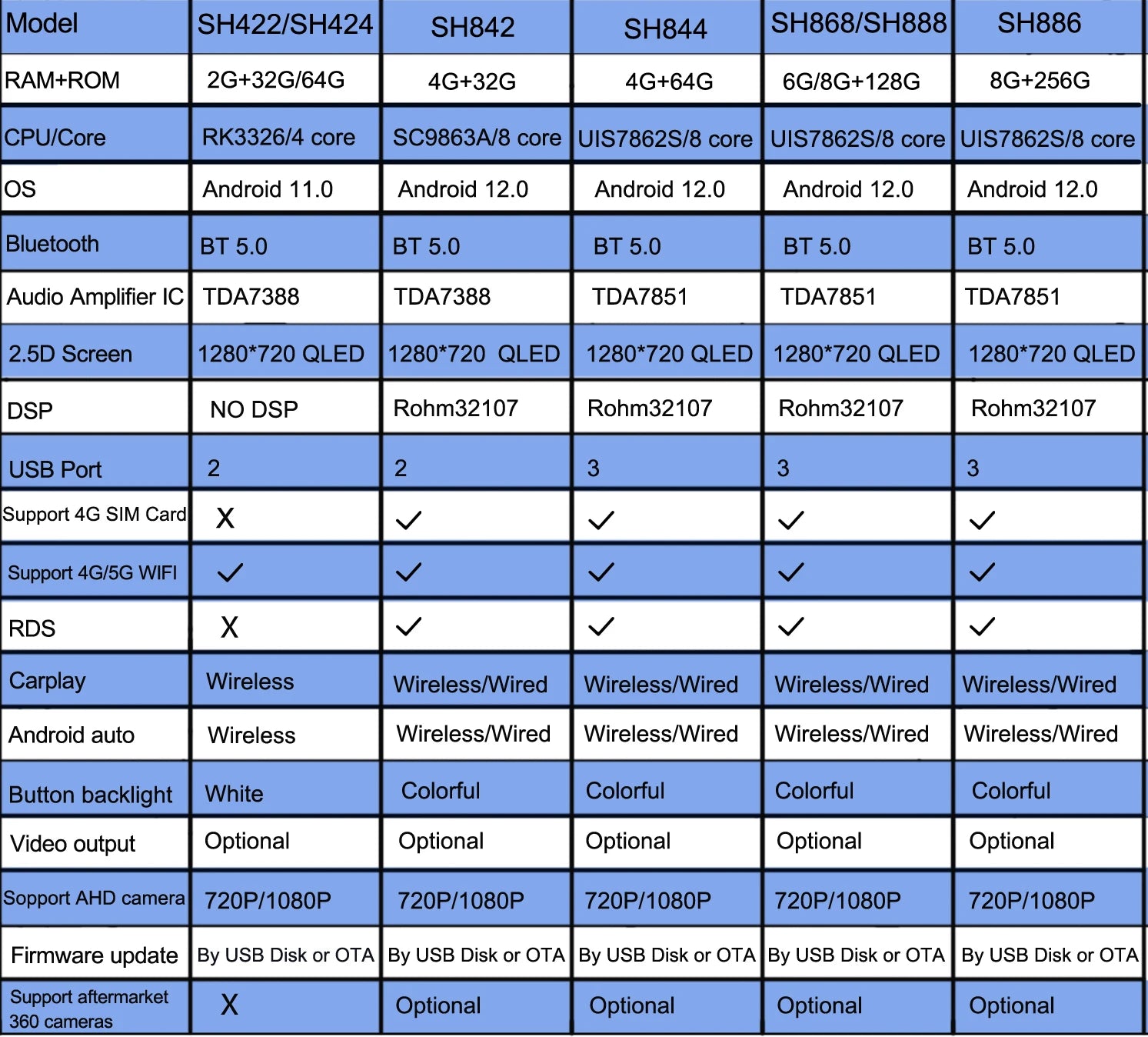 CPU/Core: AC8227/4 Core or UIS7862/8 Core