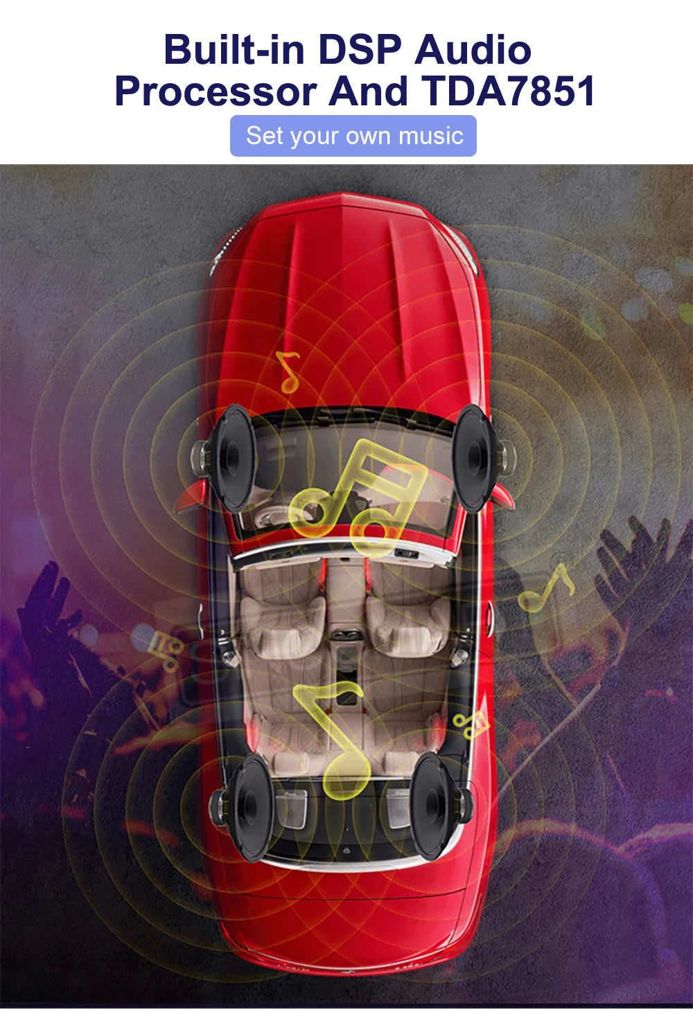 2.Built-in DSP audio processor for hi-fi sound, independent adjustment of front and rear speakers giving you fantastic music!