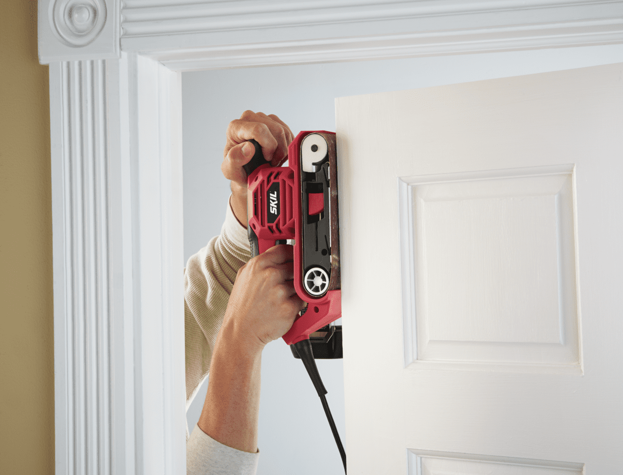 Features: Press control technology monitors sanding pad pressure applied for optimal finish., 6.0 amp of power sands any time of wood surface., Micro-filtration captures and contains fine dust particles., Auto track belt alignment that keeps the belt centered., Vacuum compatible and will fit standard 1-1/4 in. vacuum hoses., Flush edge sanding that sands right up to the edge for maximum capacity., Single lever belt changes., On/Off trigger with lock-on button.