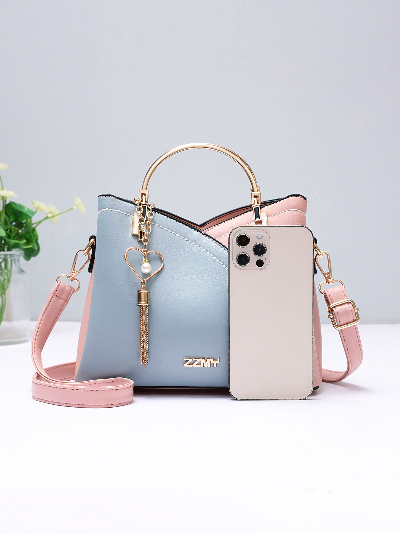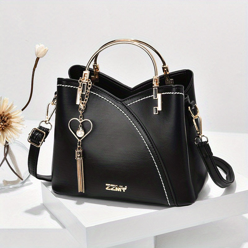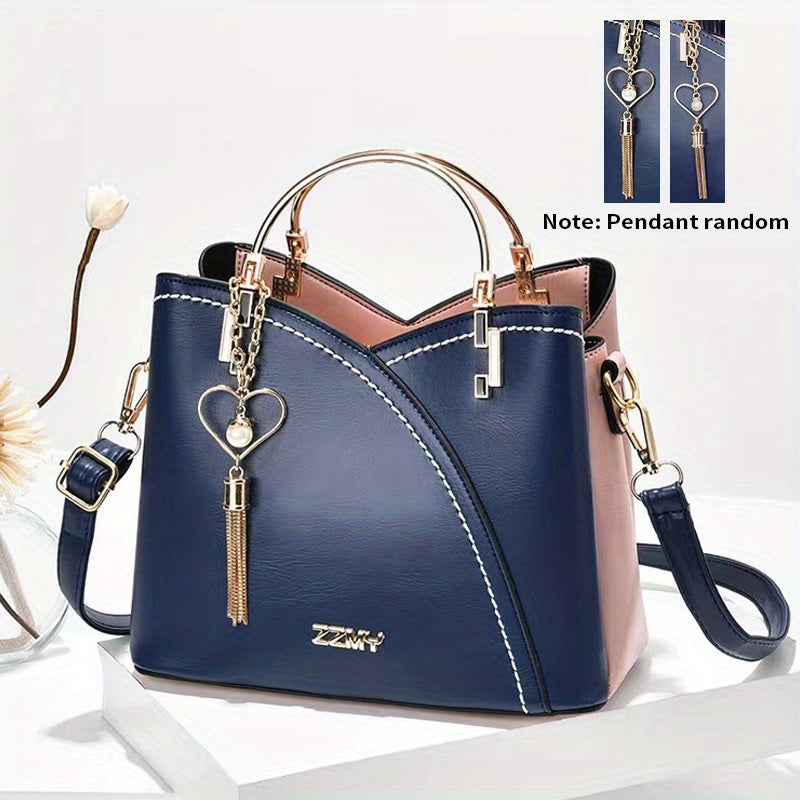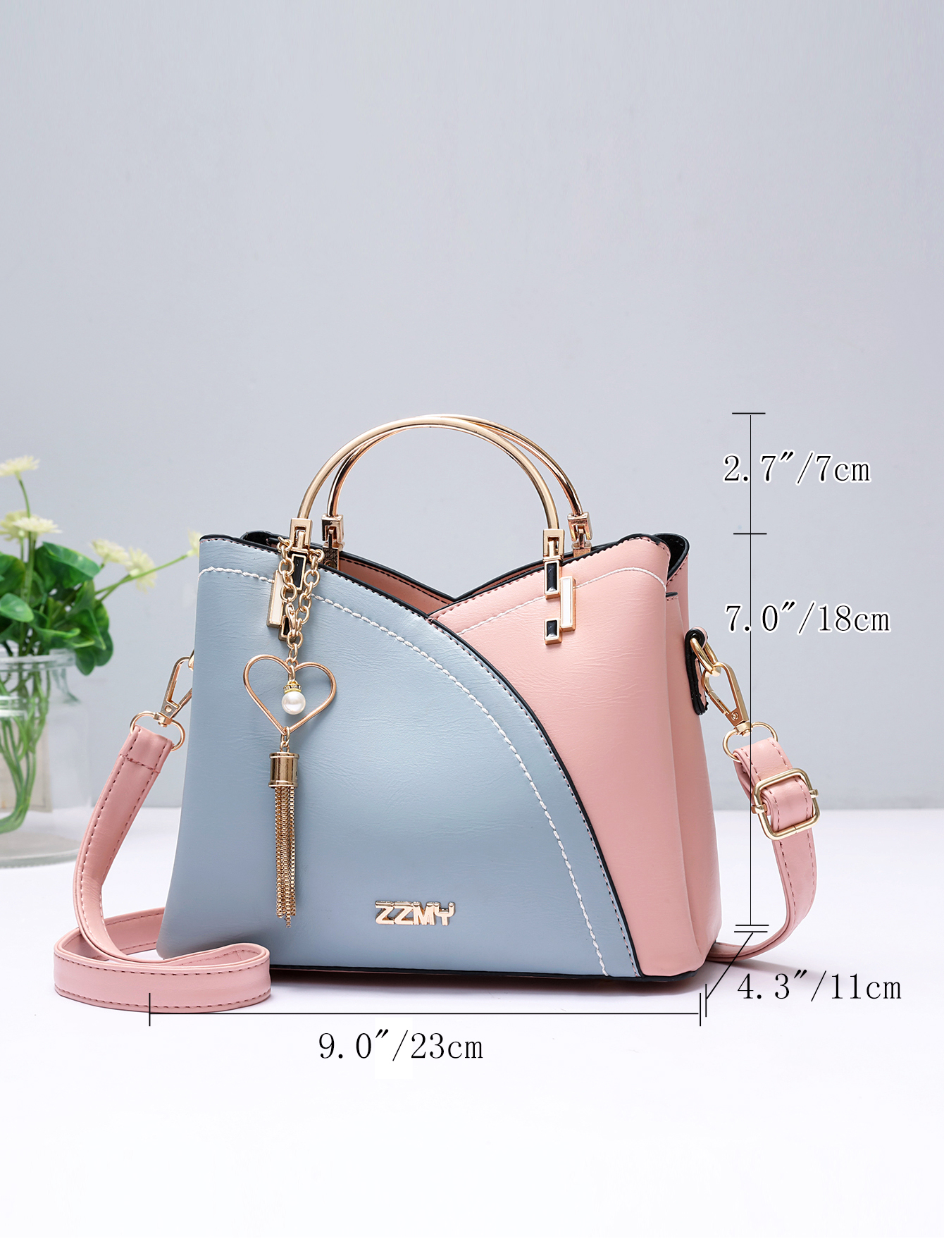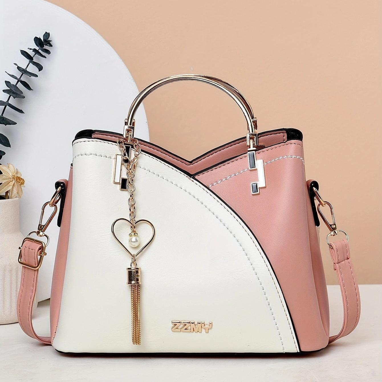 Small Two Tone Handbag, Fashion Tassel Decor Crossbody Bag, Women's Top Ring PU Leather Purse