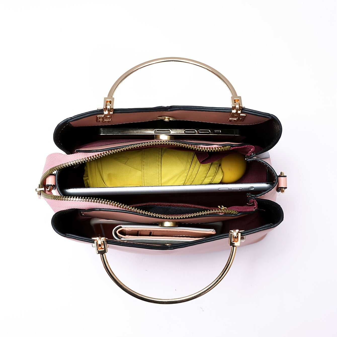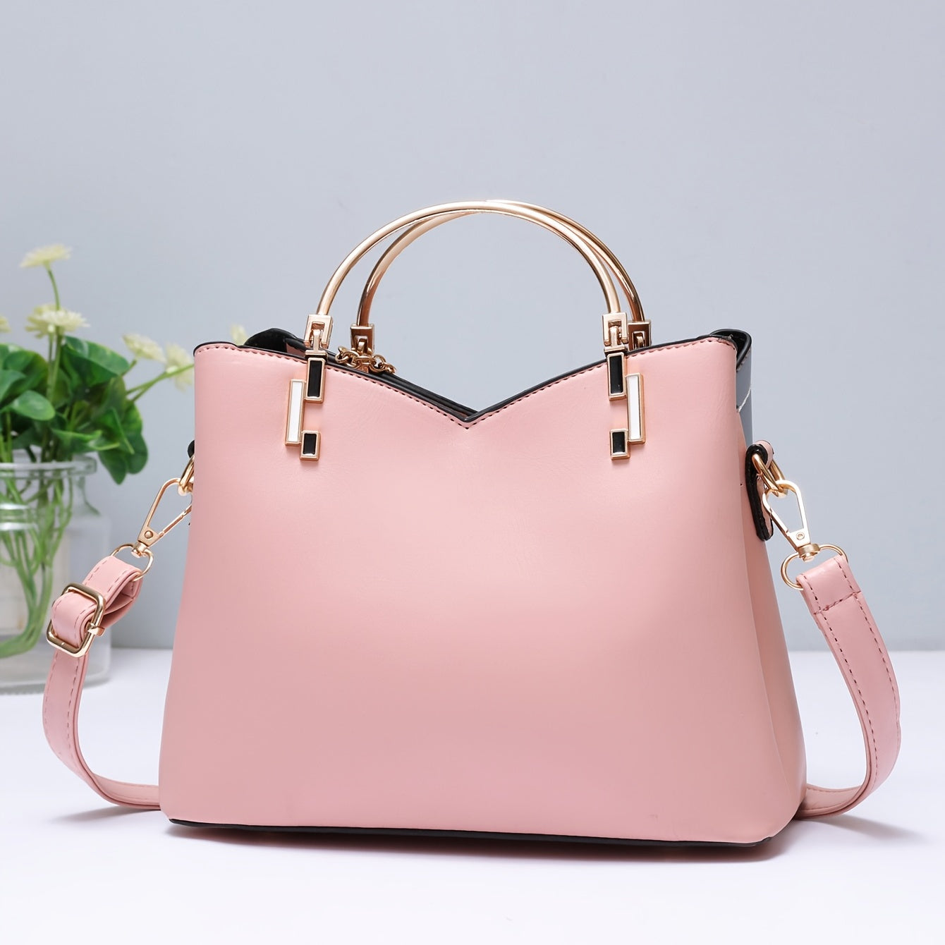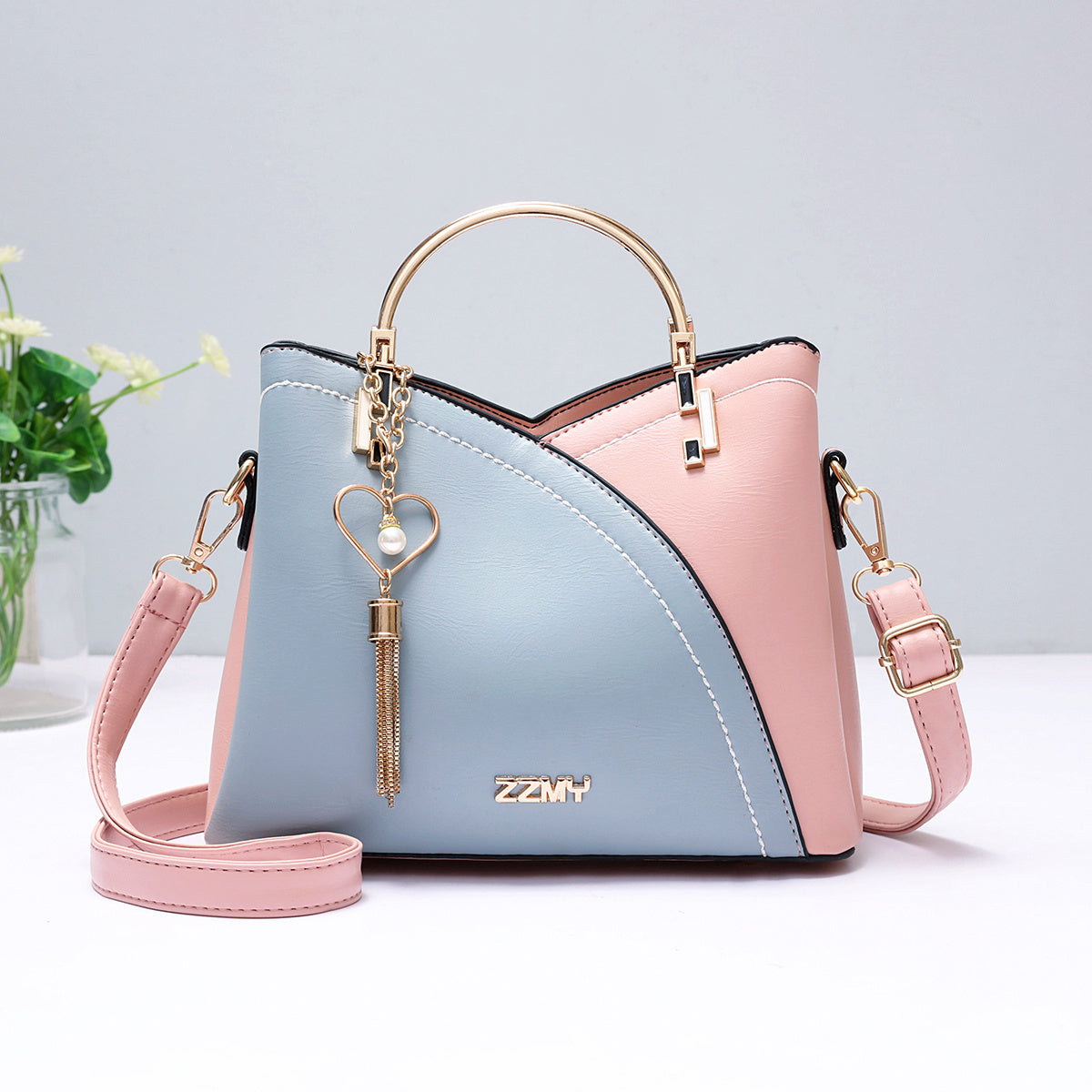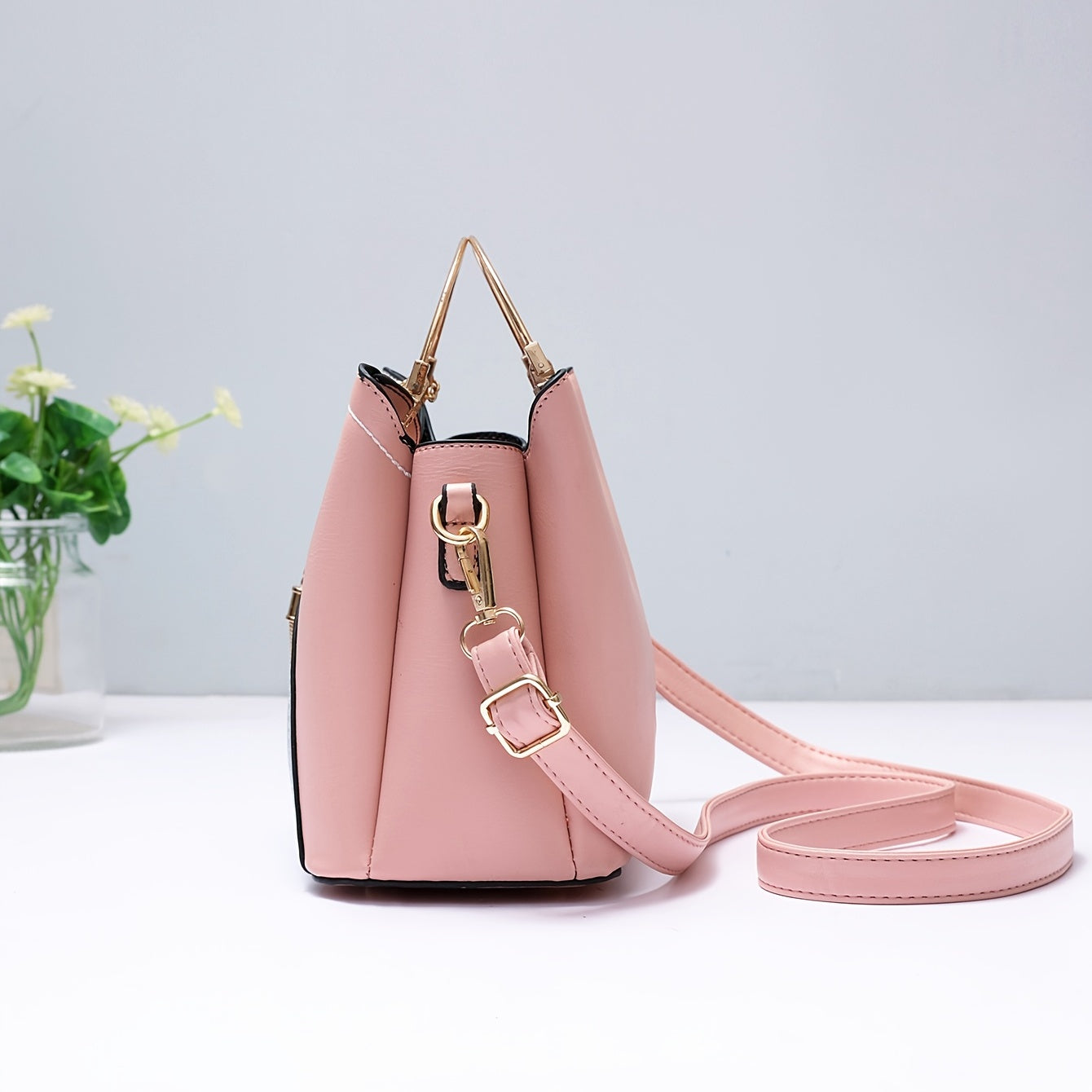 Small Two Tone Handbag, Fashion Tassel Decor Crossbody Bag, Women's Top Ring PU Leather Purse